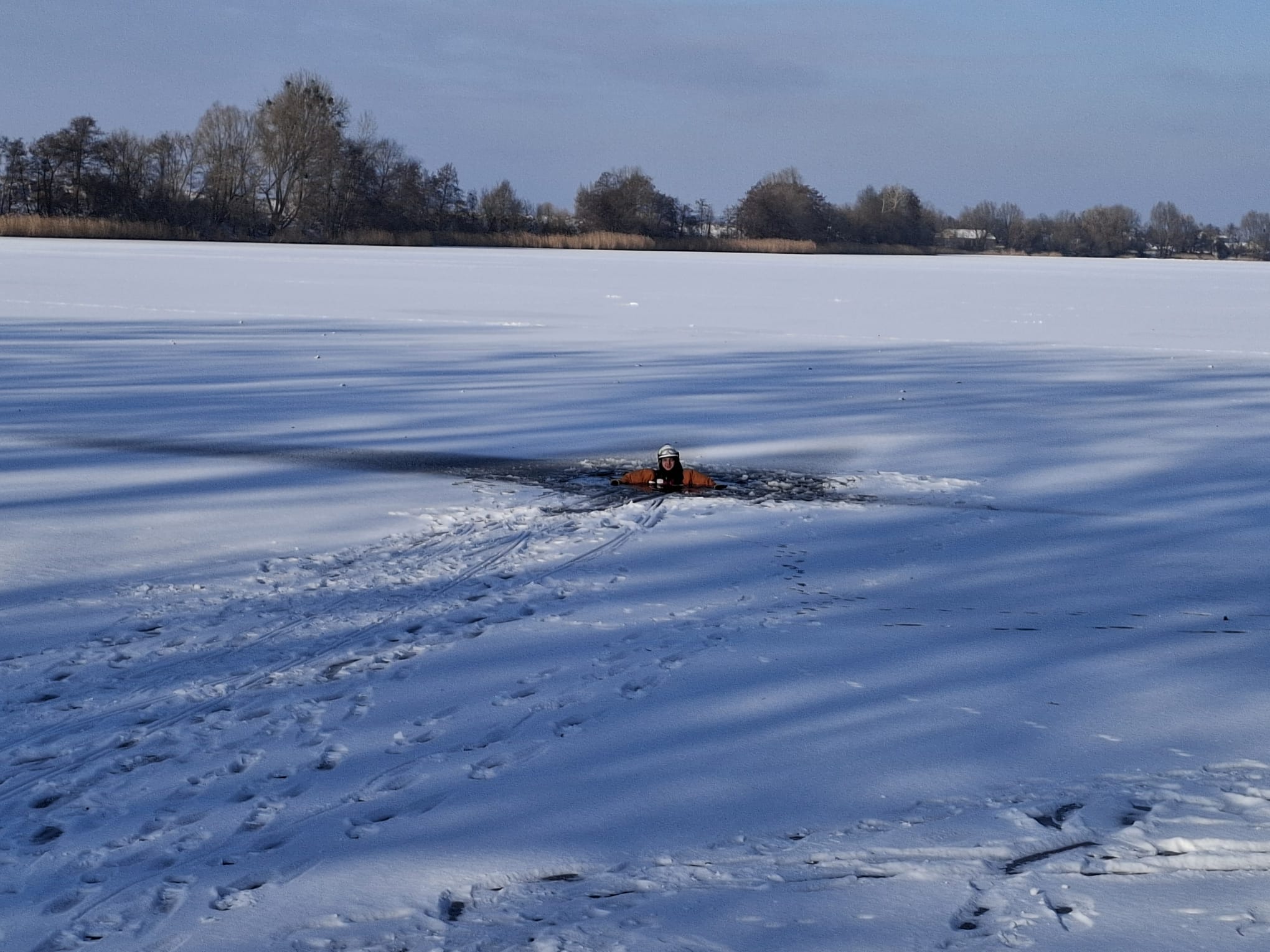 Przypominamy, że naturalne akweny nigdy nie są w pełni bezpieczne. Odwilż, zmienne temperatury oraz warstwa śniegu mogą maskować przeręble i miejsca o cienkiej pokrywie lodowej.