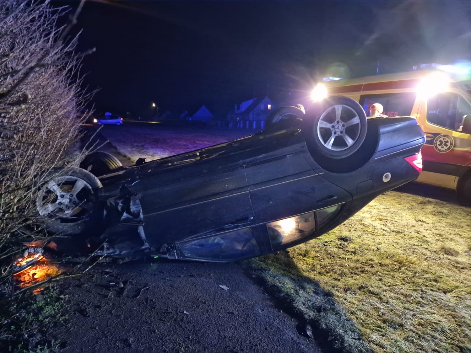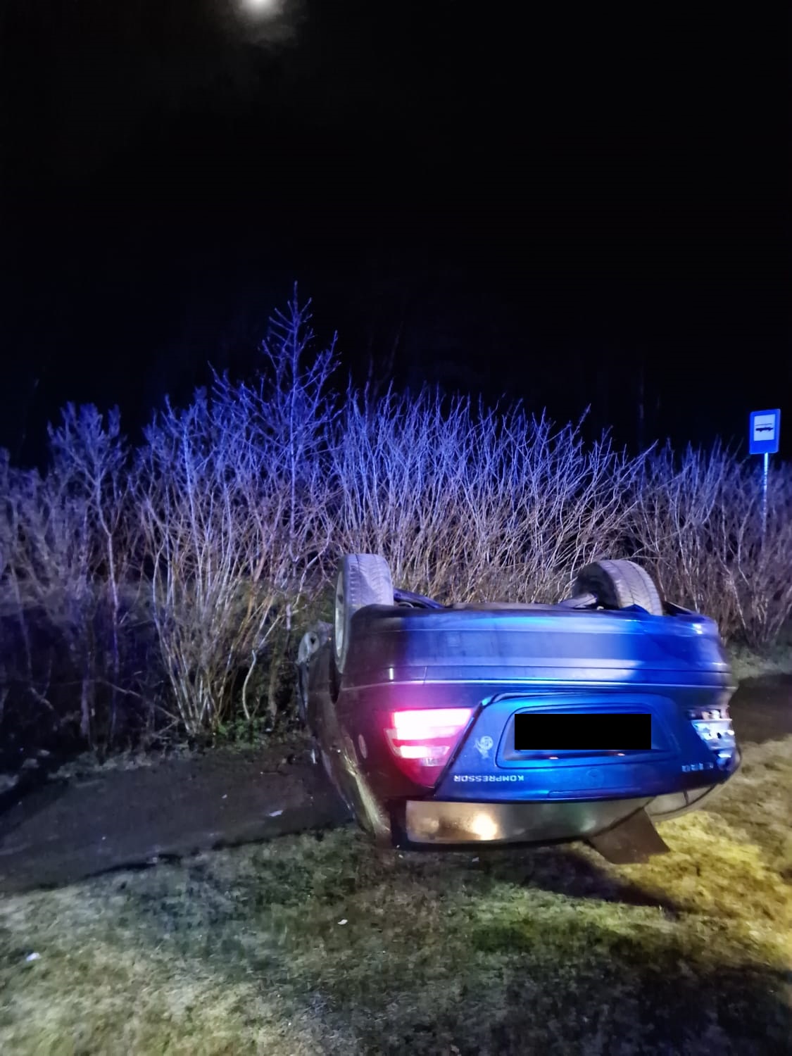 Po dojeździe na miejsce zdarzenia strażacy zastali samochód osobowy po dachowaniu, który znajdował się w przydrożnym rowie. Osoby podróżujące opuściły pojazd przed przybyciem SP i znajdowały się w pobliżu, jedna osoba została lekko poszkodowana.