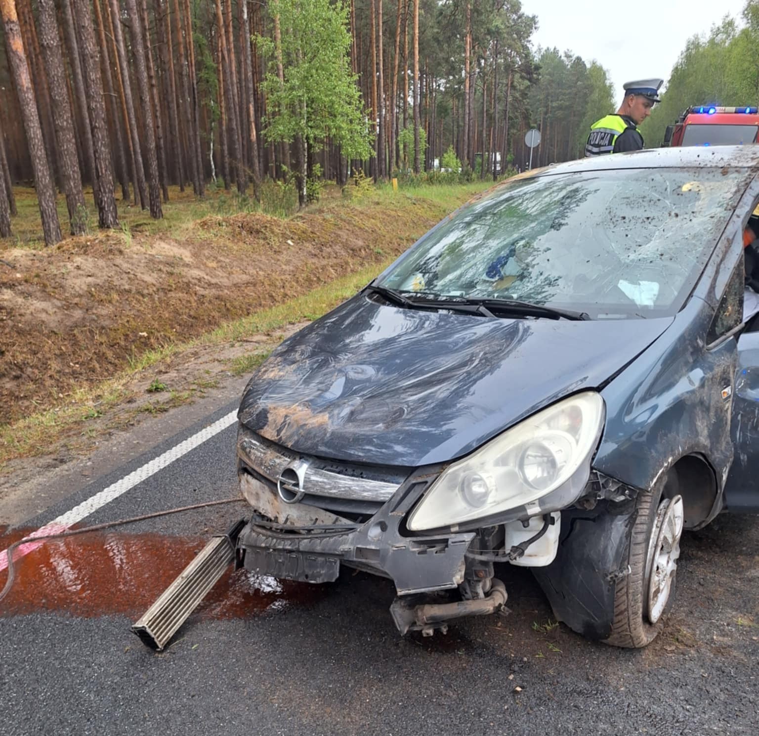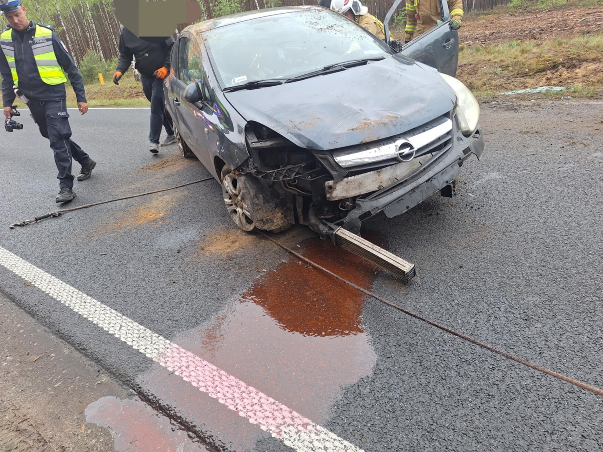 Po dojeździe na miejsce zdarzenia strażacy zastali samochód osobowy marki Opel Corsa, który po dachowaniu znajdował się poza drogą.