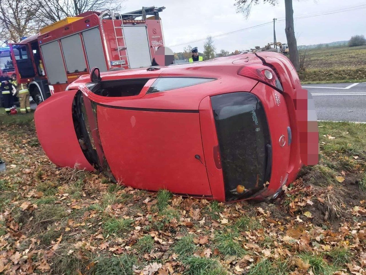 W środę, 30 października 2024 roku o godz. 12.47 do dyżurnego Stanowiska Kierowania Państwowej Straży Pożarnej w Szamotułach wpłynęło zgłoszenie z Centrum Powiadamiania Ratunkowego, które informowało o dachowaniu samochodu osobowego oraz jednej osobie poszkodowanej uwięzionej wewnątrz pojazdu w miejscowości Karolewo gm. Ostroróg.