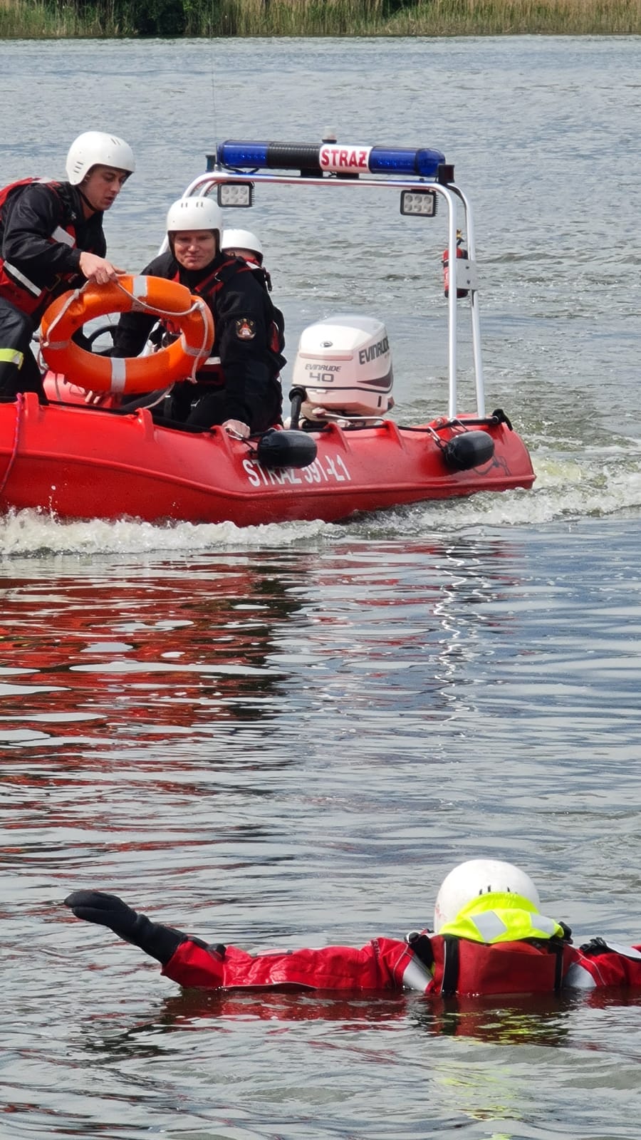 Każdego dnia szamotulscy strażacy pomimo pandemii nieprzerwanie doskonalą swoje umiejętności w dziedzinach ratowniczych. We wtorek, 18 maja zgodnie z miesięcznym planem doskonalenia zawodowego strażacy przeprowadzili ćwiczenia z ratownictwa wodnego na jeziorze w Pamiątkowie.