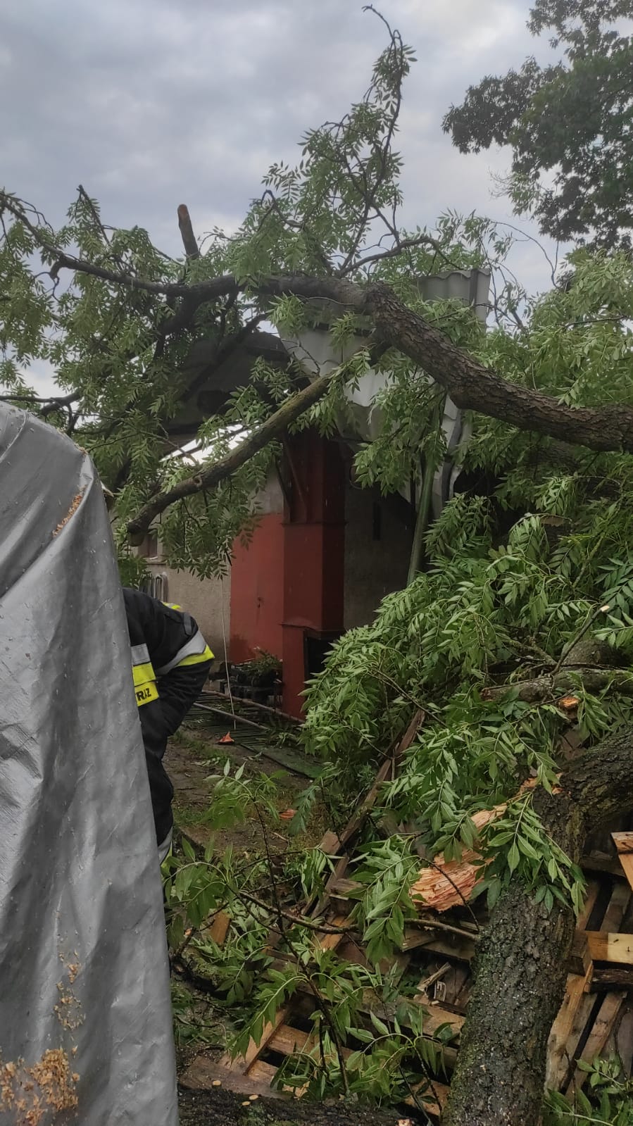 Działania SP polegały na zabezpieczeniu miejsca zdarzenia oraz usunięciu drzewa z budynku.