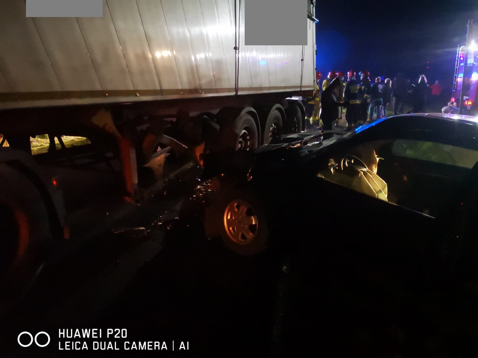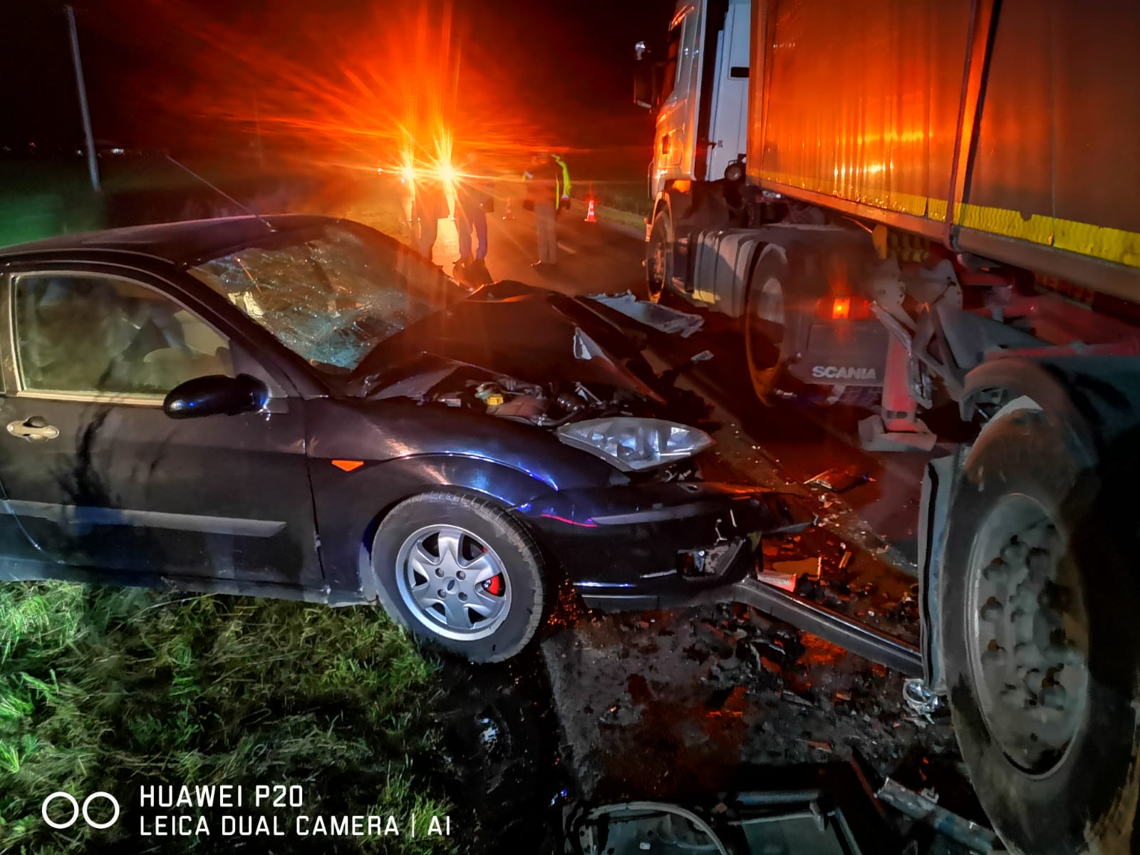 Po dojeździe na miejsce zdarzenia strażacy zastali dwa samochody, które zderzyły się ze sobą. Samochód ciężarowy znajdował się na pasie ruchu, natomiast pojazd osobowy na poboczu drogi. Dwie osoby poszkodowane znajdowały się wewnątrz pojazdu, natomiast kierujący samochodem ciężarowym znajdował się w pobliżu.