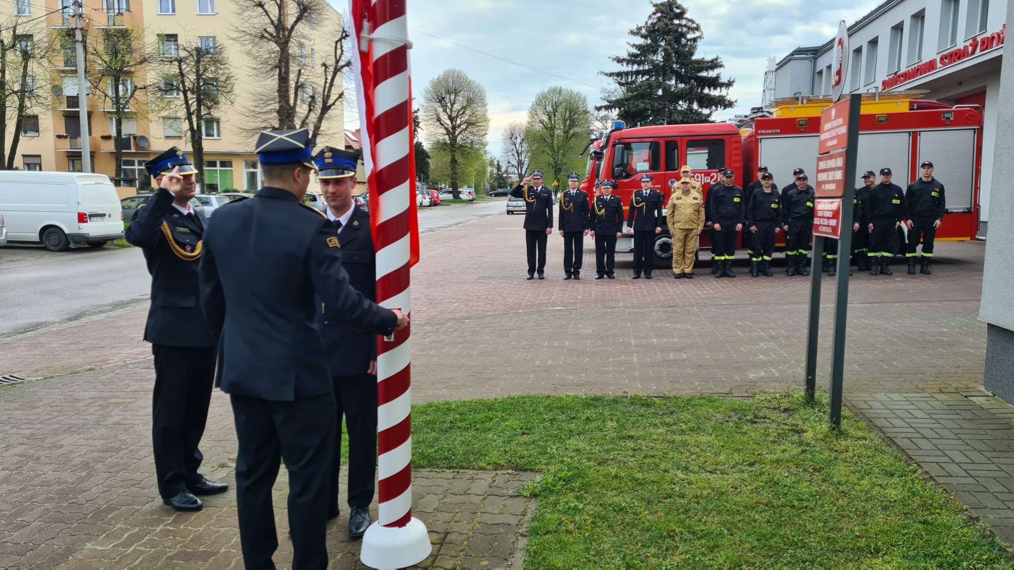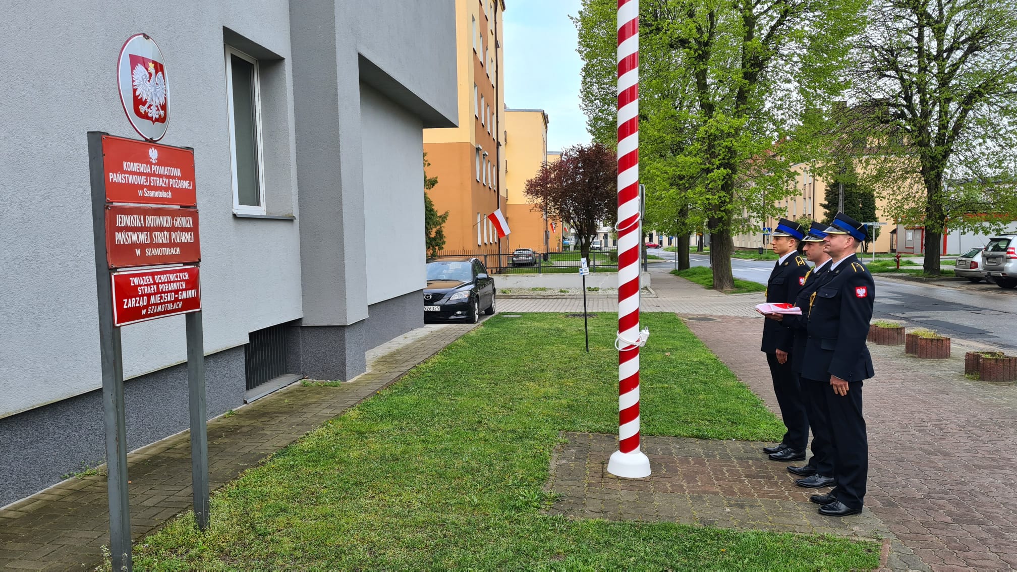 W tym szczególnym dniu w Komendzie Powiatowej Państwowej Straży Pożarnej w Szamotułach odbyła się uroczysta zmiana służby z okazji Dnia Flagi Rzeczypospolitej Polskiej w której wzięli udział: Z-ca Komendanta Powiatowego PSP – bryg. Arkadiusz Rakowski, Dowódca Jednostki Ratowniczo- Gaśniczej – st. kpt. Marcin Kina oraz funkcjonariusze KP PSP w Szamotułach i zmian służbowych. Podczas uroczystości przy dźwiękach Mazurka Dąbrowskiego dokonano uroczystego podniesienia flagi państwowej.