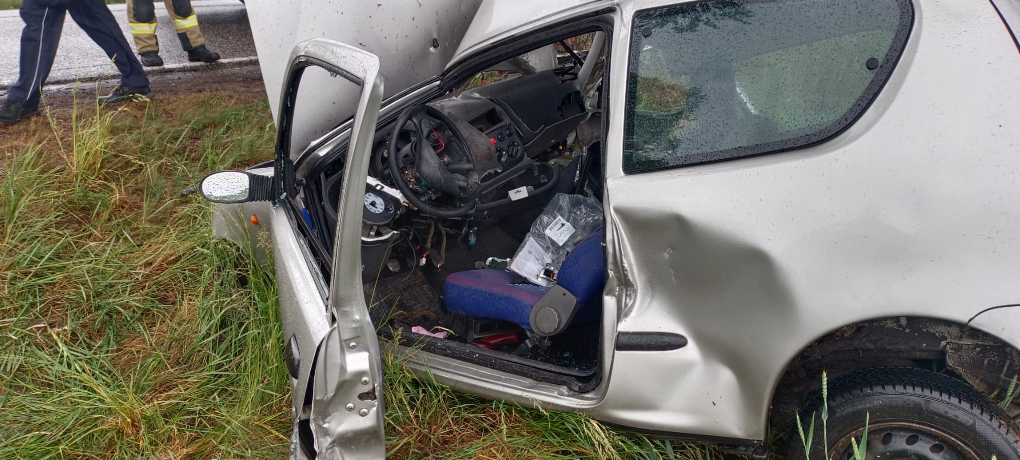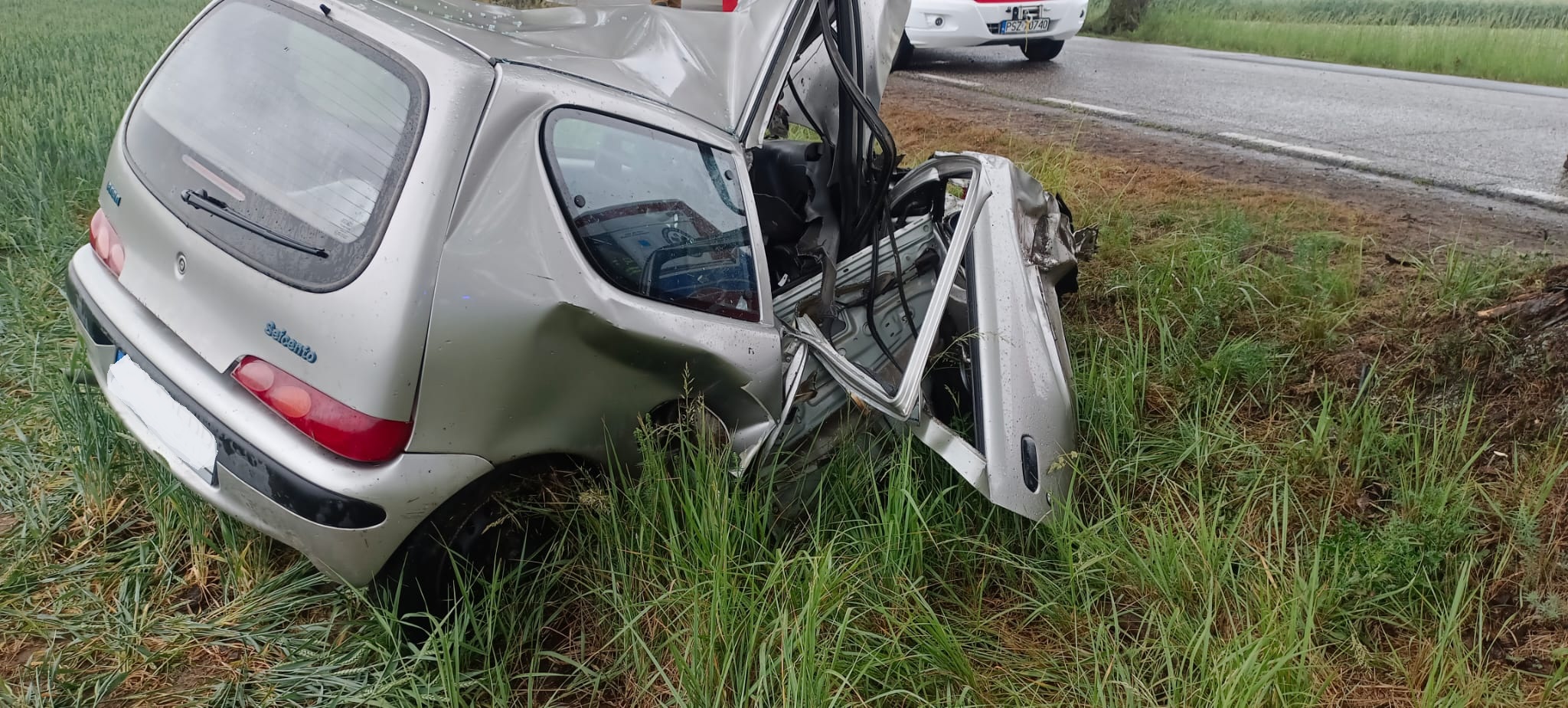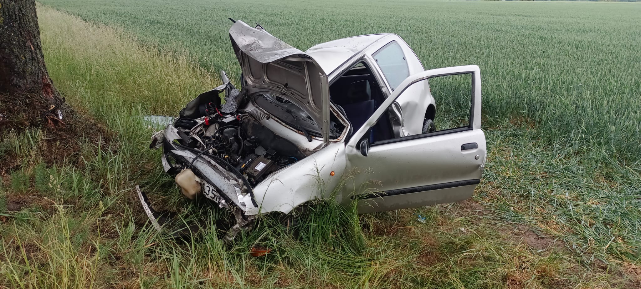 Po dojeździe na miejsce zdarzenia strażacy zastali samochód osobowy marki Fiat, który uderzył w drzewo. Kierujący znajdował się uwięziony wewnątrz pojazdu.