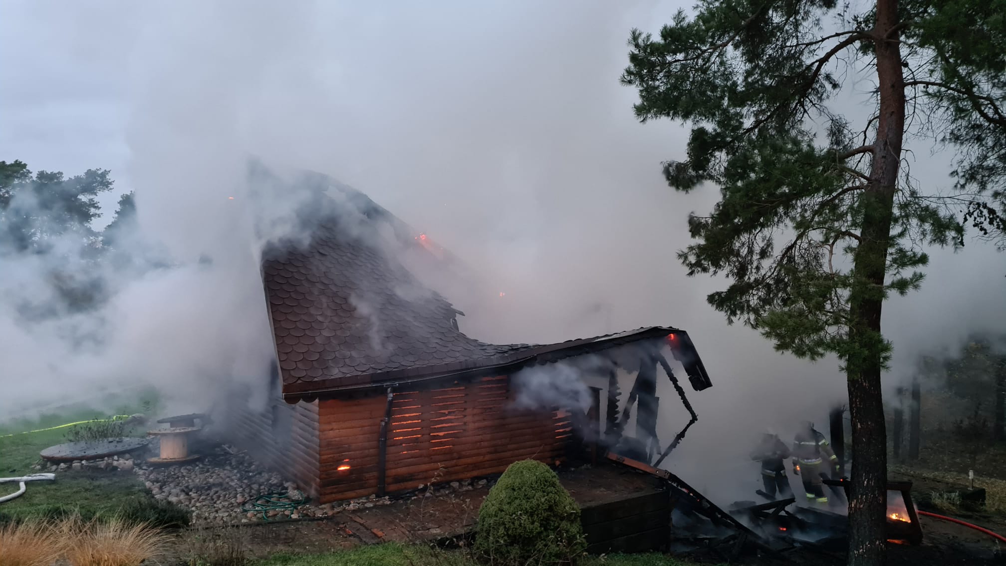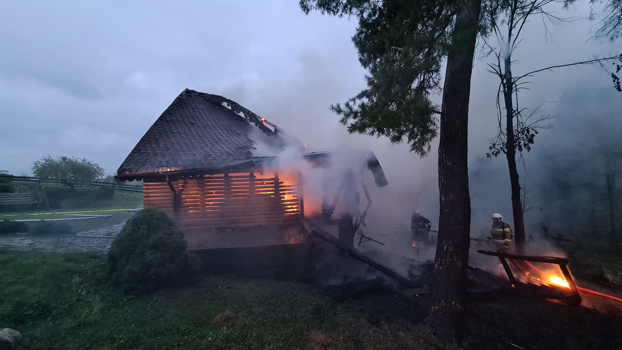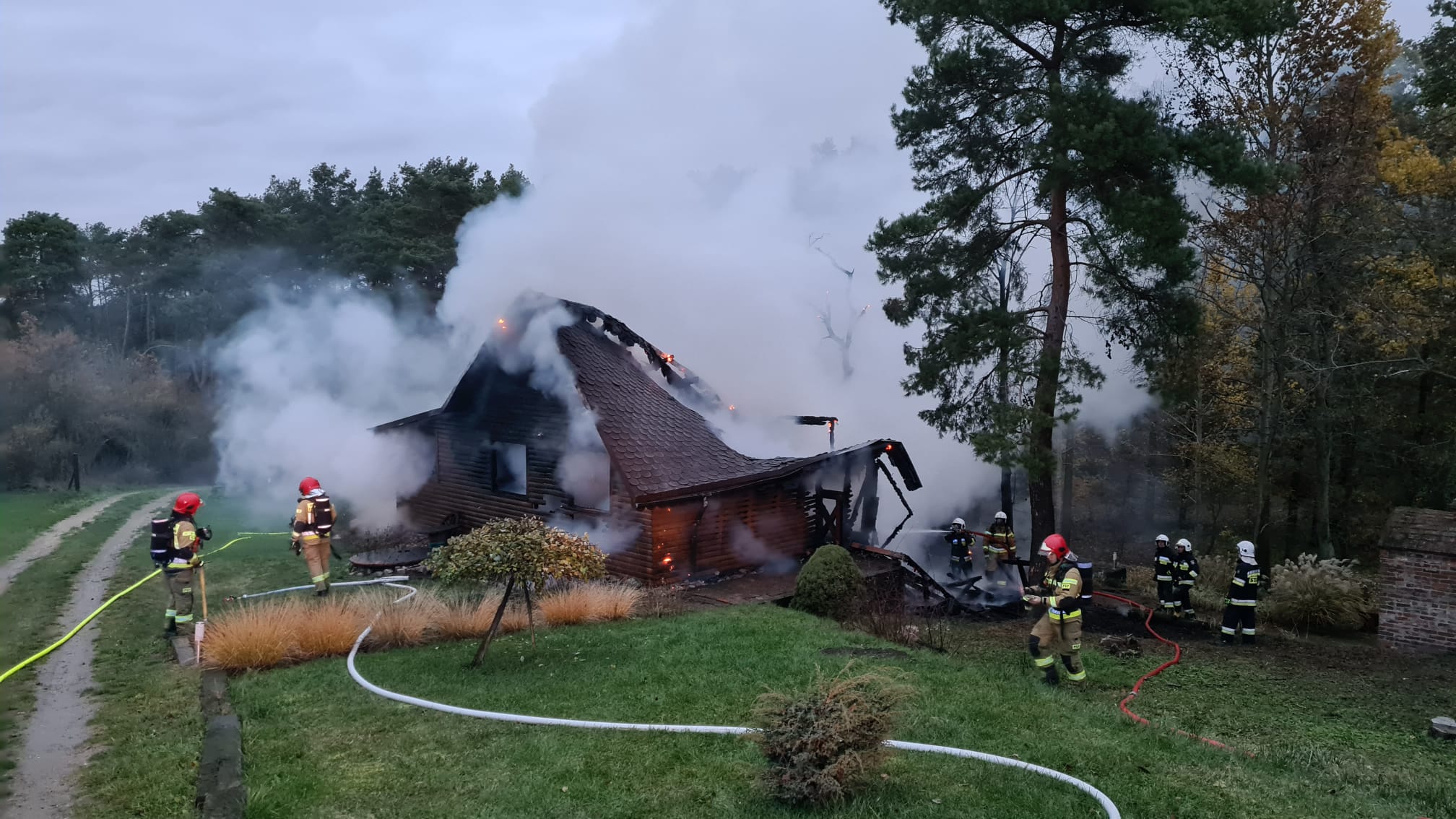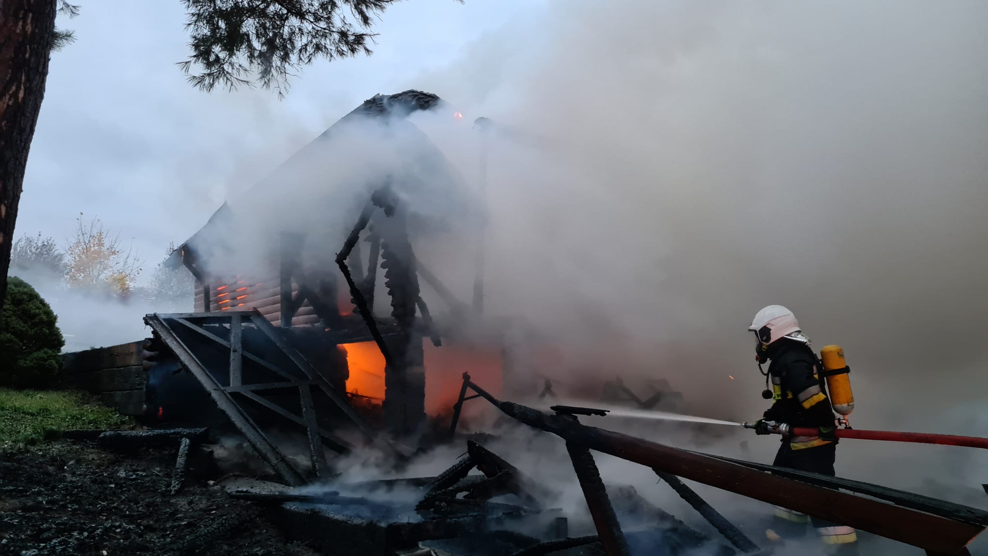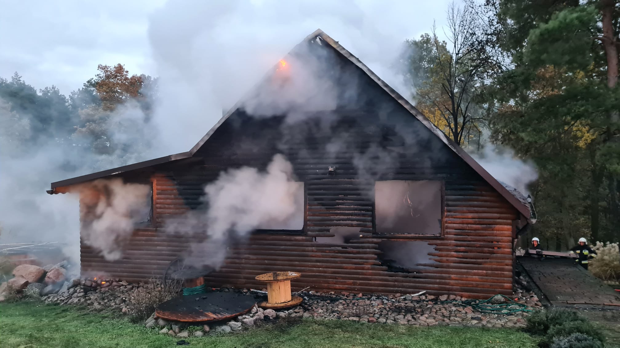 Po dojeździe na miejsce zdarzenia ratownicy zastali całkowicie objęty pożarem drewniany budynek mieszkalny.