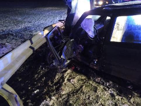 Po dojeździe na miejsce zdarzenia strażacy zastali samochód osobowy marki Mercedes, który uderzył w barierę energochłonną. Jedna osoba poszkodowana znajdowała się uwięziona wewnątrz pojazdu.