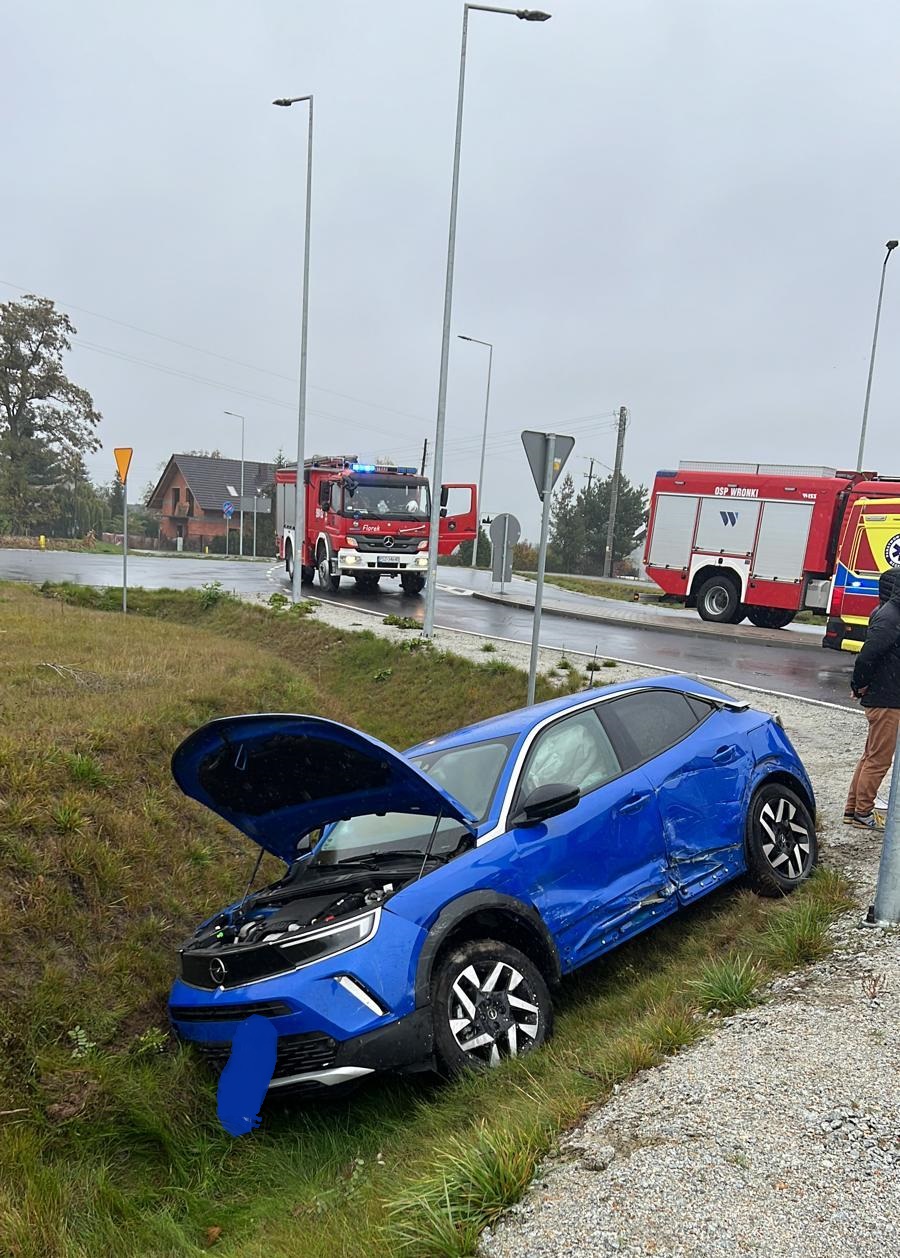 Samochód marki Opel znajdował się w przydrożnym rowie, natomiast drugi pojazd marki Opel znajdował się na skrzyżowaniu.