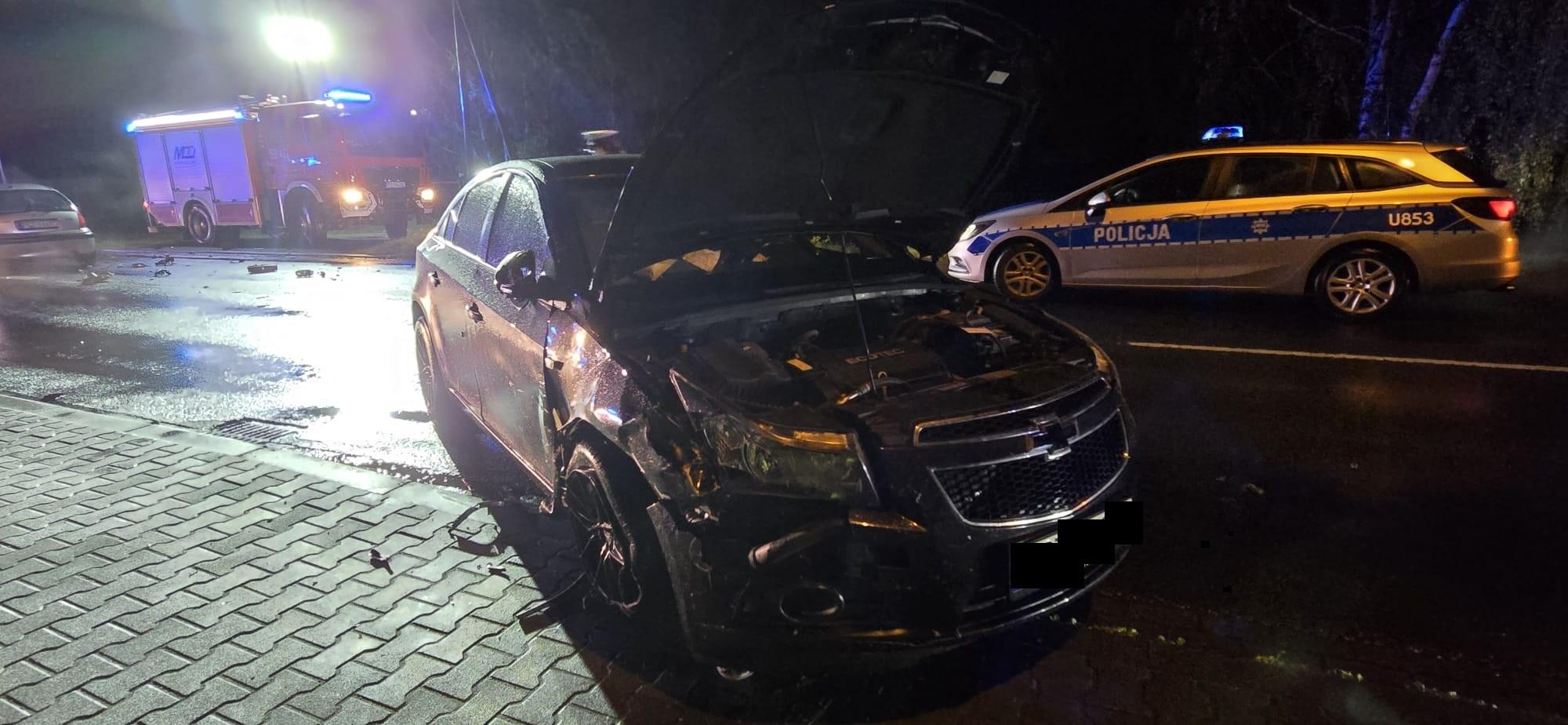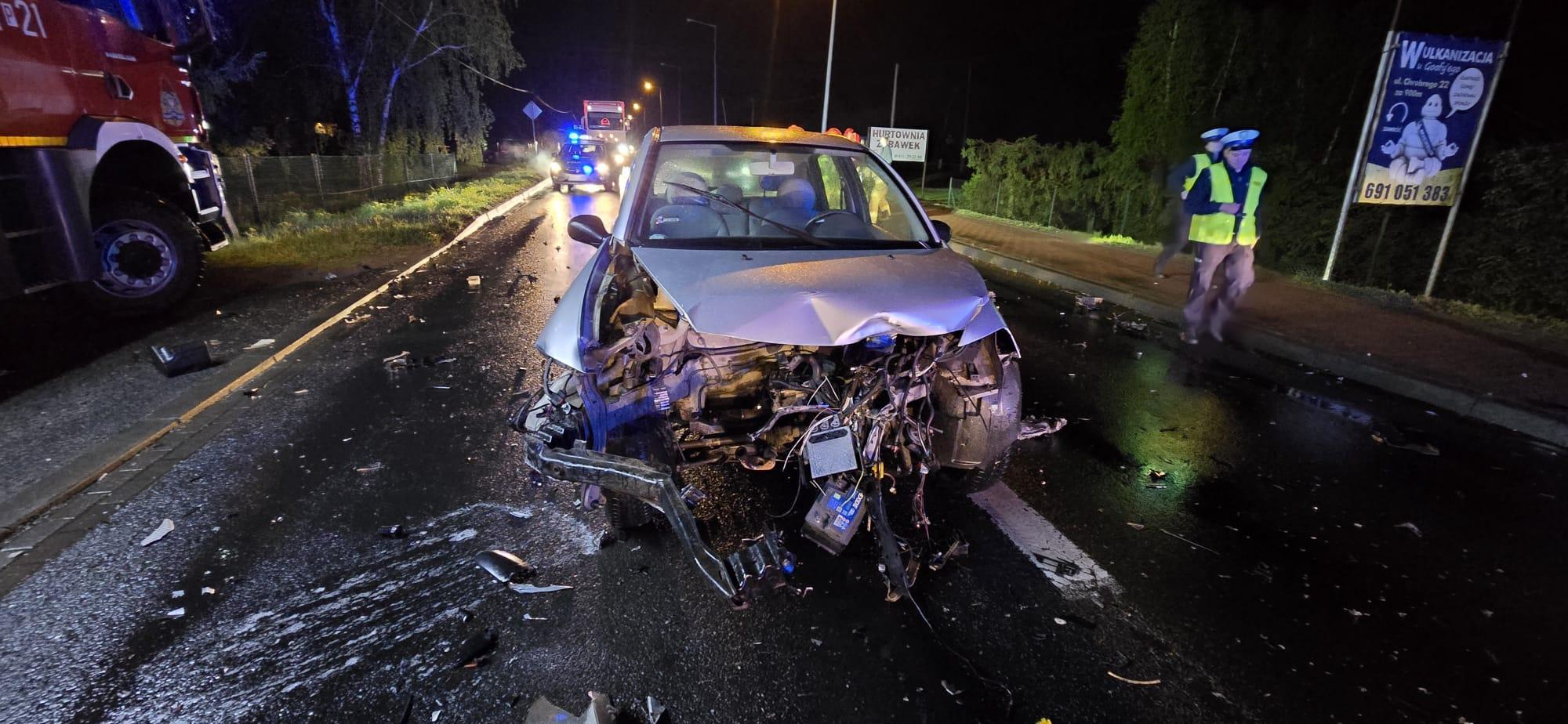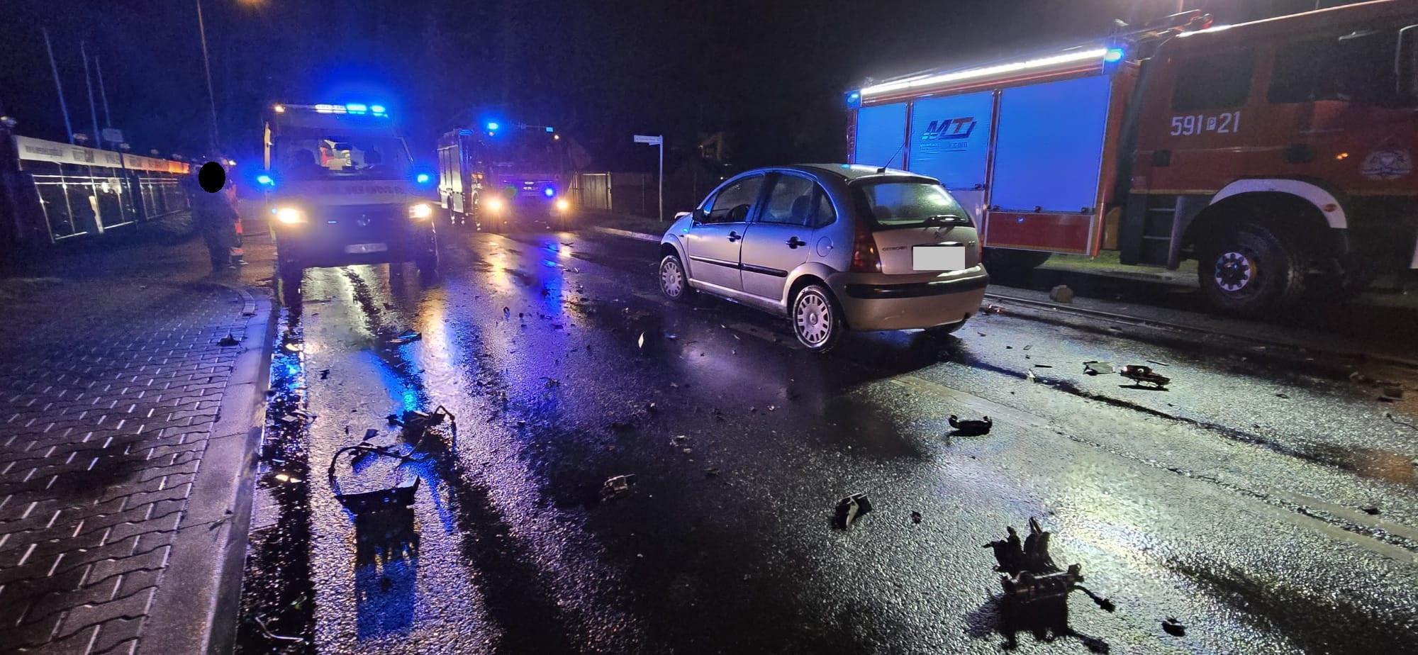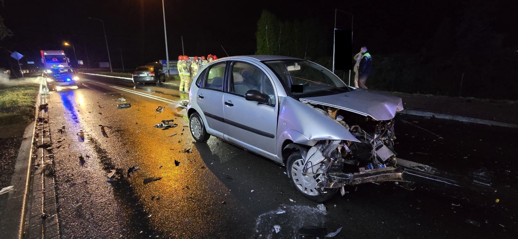Po dojeździe na miejsce zdarzenia strażacy zastali samochód marki Citroen C3 , który zderzył się z pojazdem marki Chevrolet, samochody znajdowały się na drodze, droga wojewódzka była zablokowana.