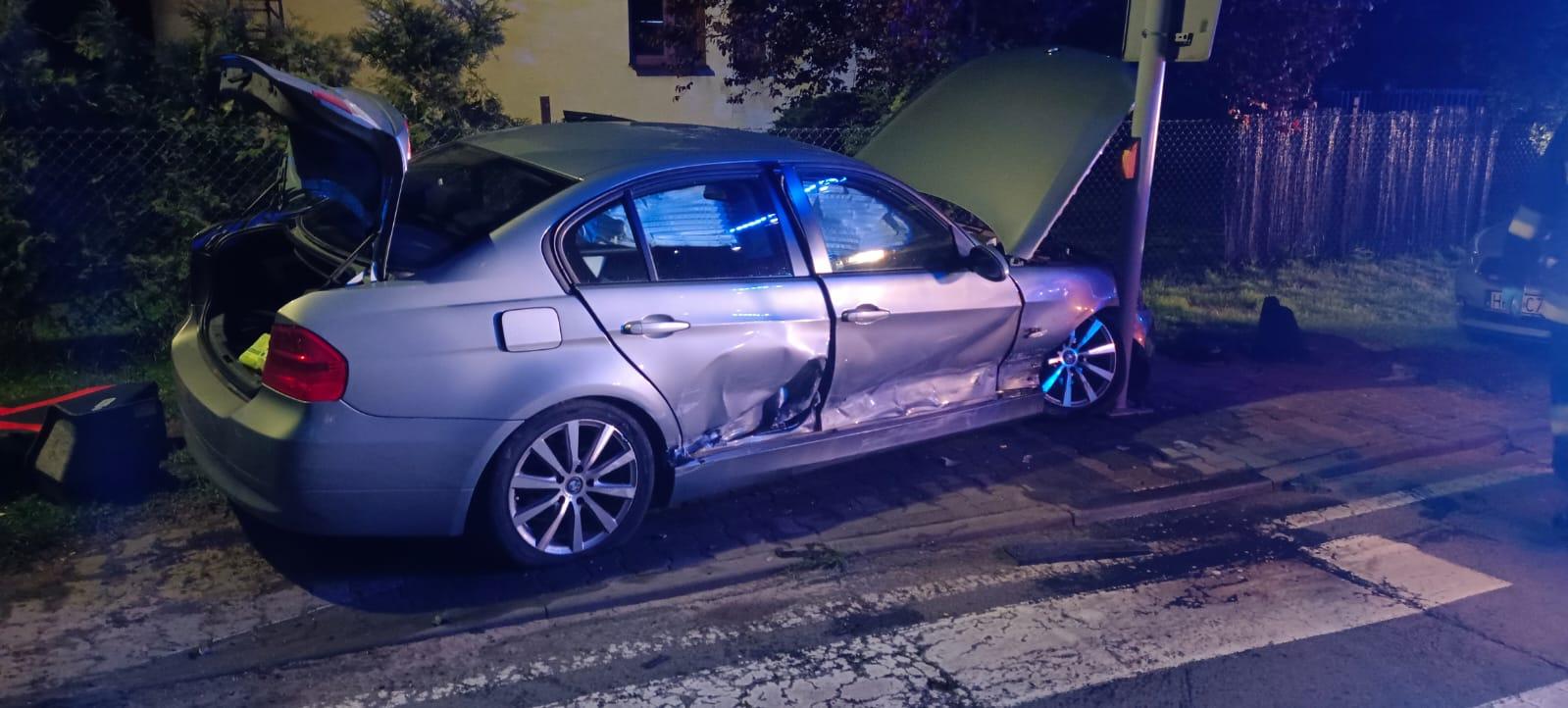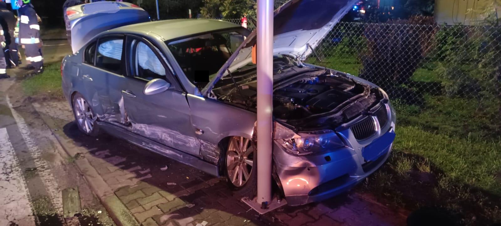 Po dojeździe na miejsce zdarzenia strażacy zastali samochód marki BMW, który zderzył się z pojazdem marki VW Beetle, samochód BMW po kolizji uderzył przodem w słup oświetleniowy.
