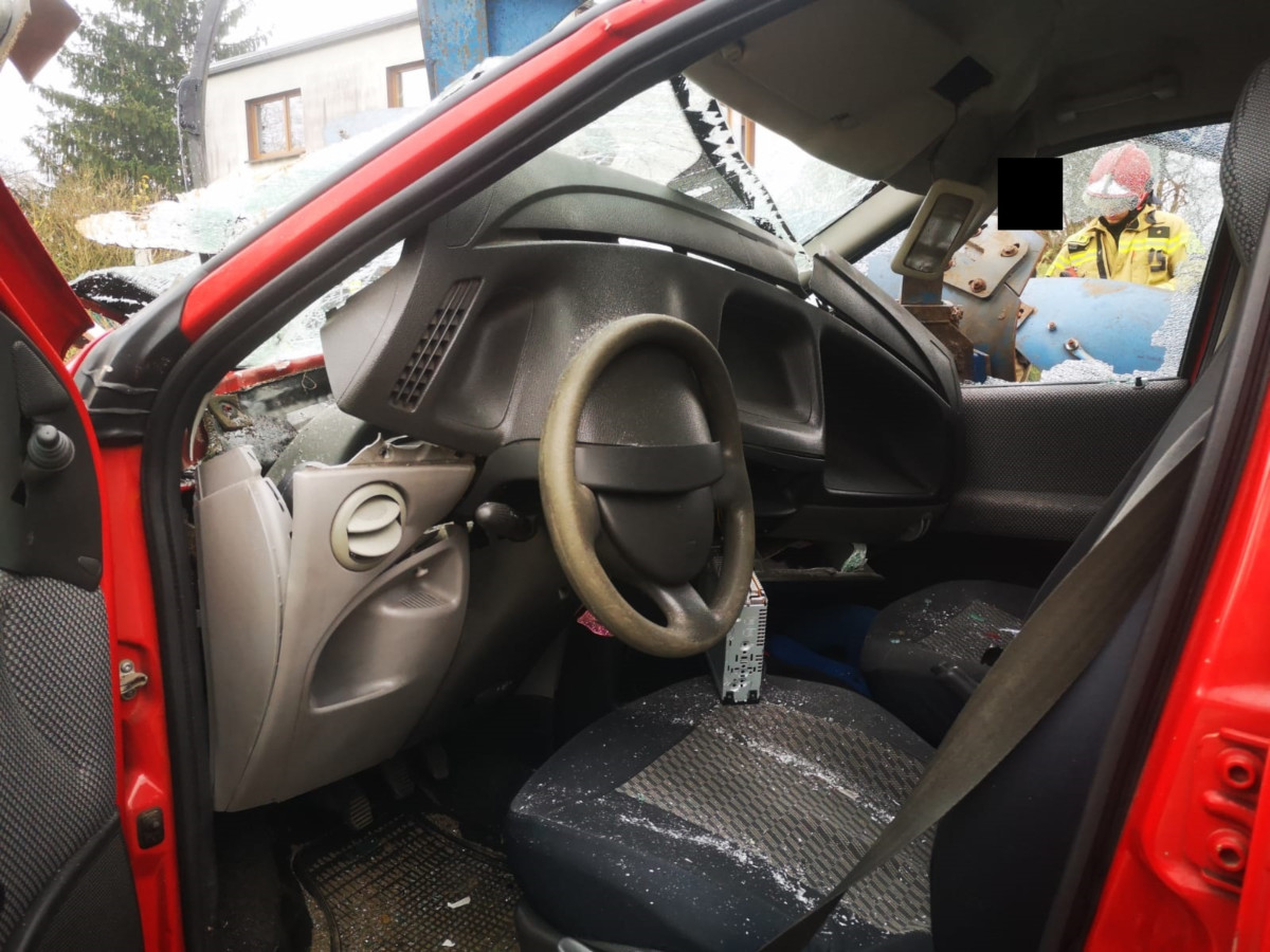 Po dojeździe na miejsce zdarzenia strażacy zastali samochód osobowy, który uderzył w tył ciągnika rolniczego. Kierujący opuścili pojazdy przed przybyciem SP i znajdowali się w pobliżu. Policja była na miejscu.