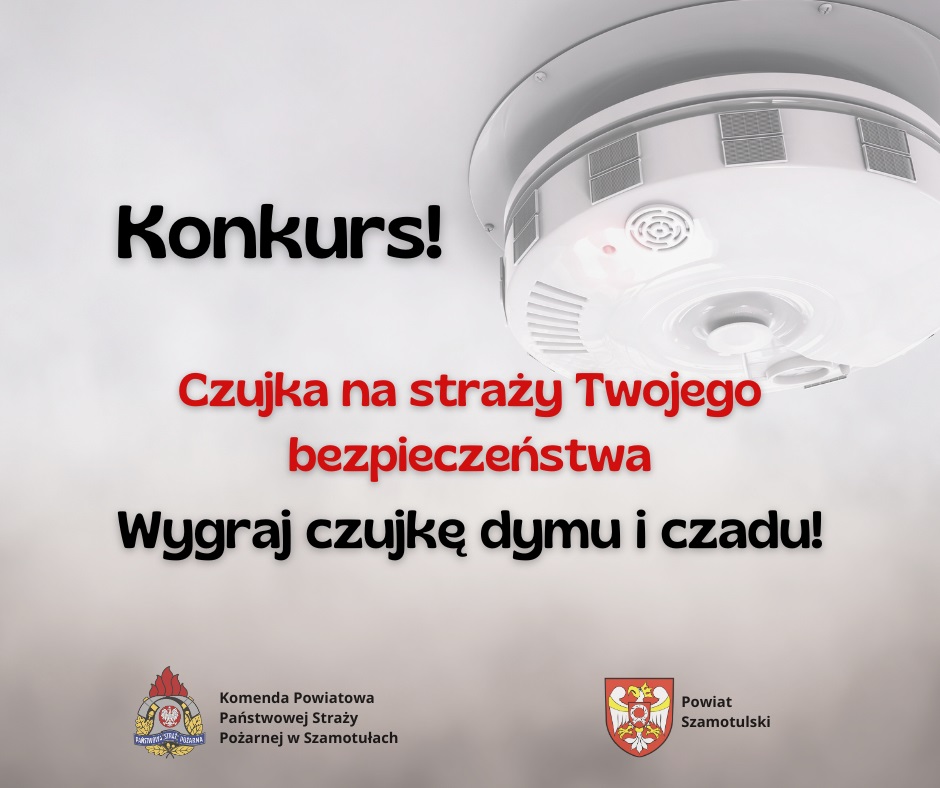 Przez starostwo powiatowe został ogłoszony konkurs, w którym mieszkańcy powiatu szamotulskiego, które poprawnie odpowiedzą na wszystkie pytania otrzymają od nas czujki dymu i czadu!