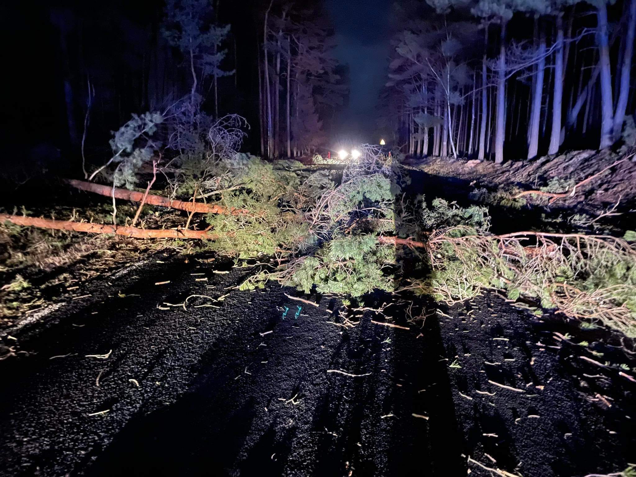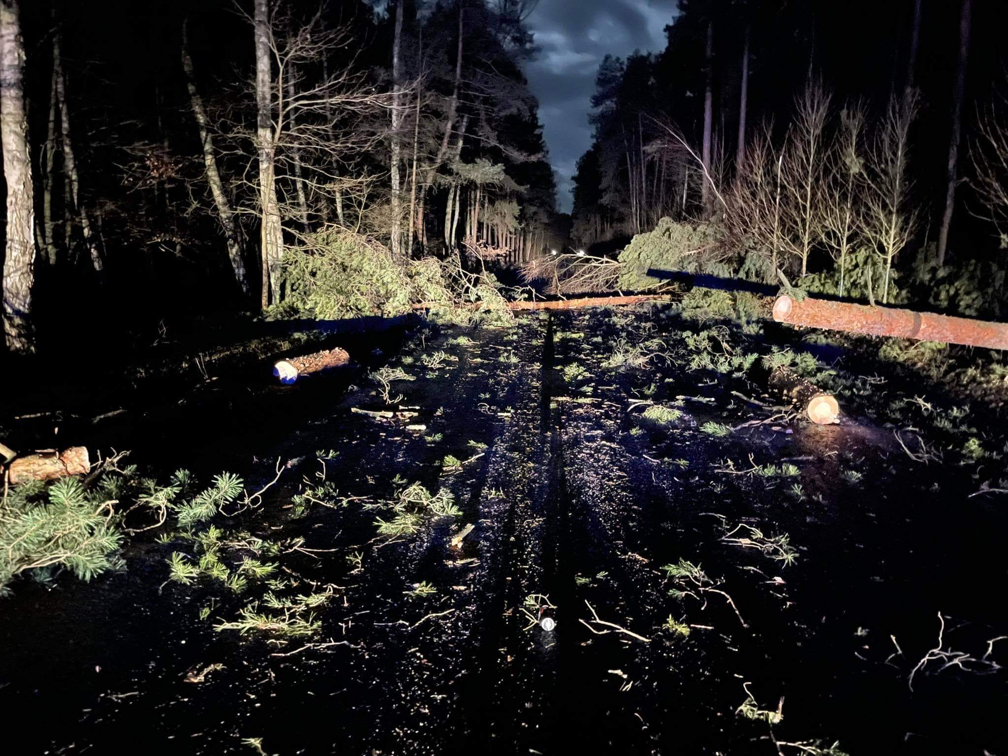W piątek około godziny 23.30 do Dyżurnego Stanowiska Kierowania Państwowej Straży Pożarnej w Szamotułach zaczęły napływać pierwsze zgłoszenia o pękniętych i leżących konarach drzew, zerwanych liniach energetycznych i telefonicznych oraz poprzewracanych drzewach, które blokowały przejazd na drogach gminnych, powiatowych i wojewódzkich oraz uszkodzonych pokryciach dachu na budynkach mieszkalnych i gospodarczych.
