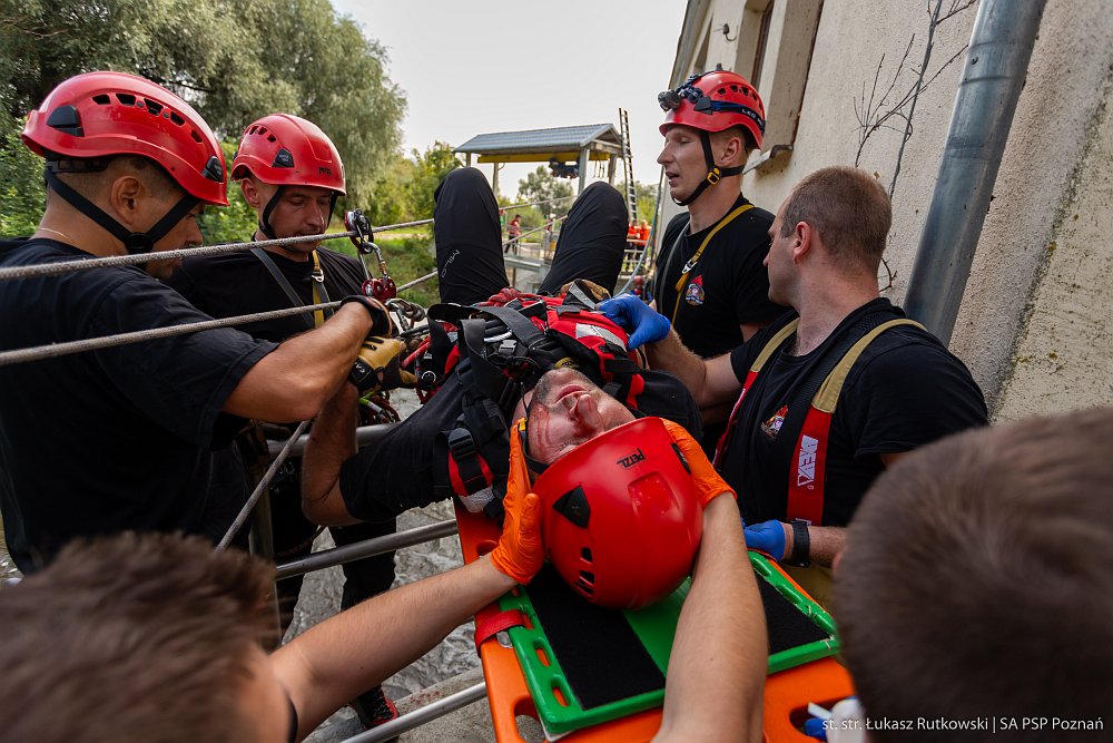 Ostatnim założenie drugiego dnia ćwiczeń była ewakuacja dwóch spadochroniarzy, którzy zawiśli na drzewie na wysokości powyżej 10 m przy Oczyszczalni Ścieków w Koninie przy ul. Nadrzecznej.