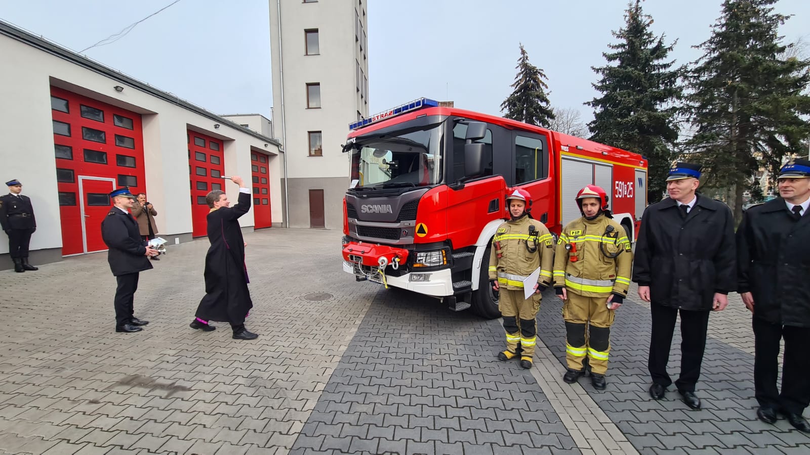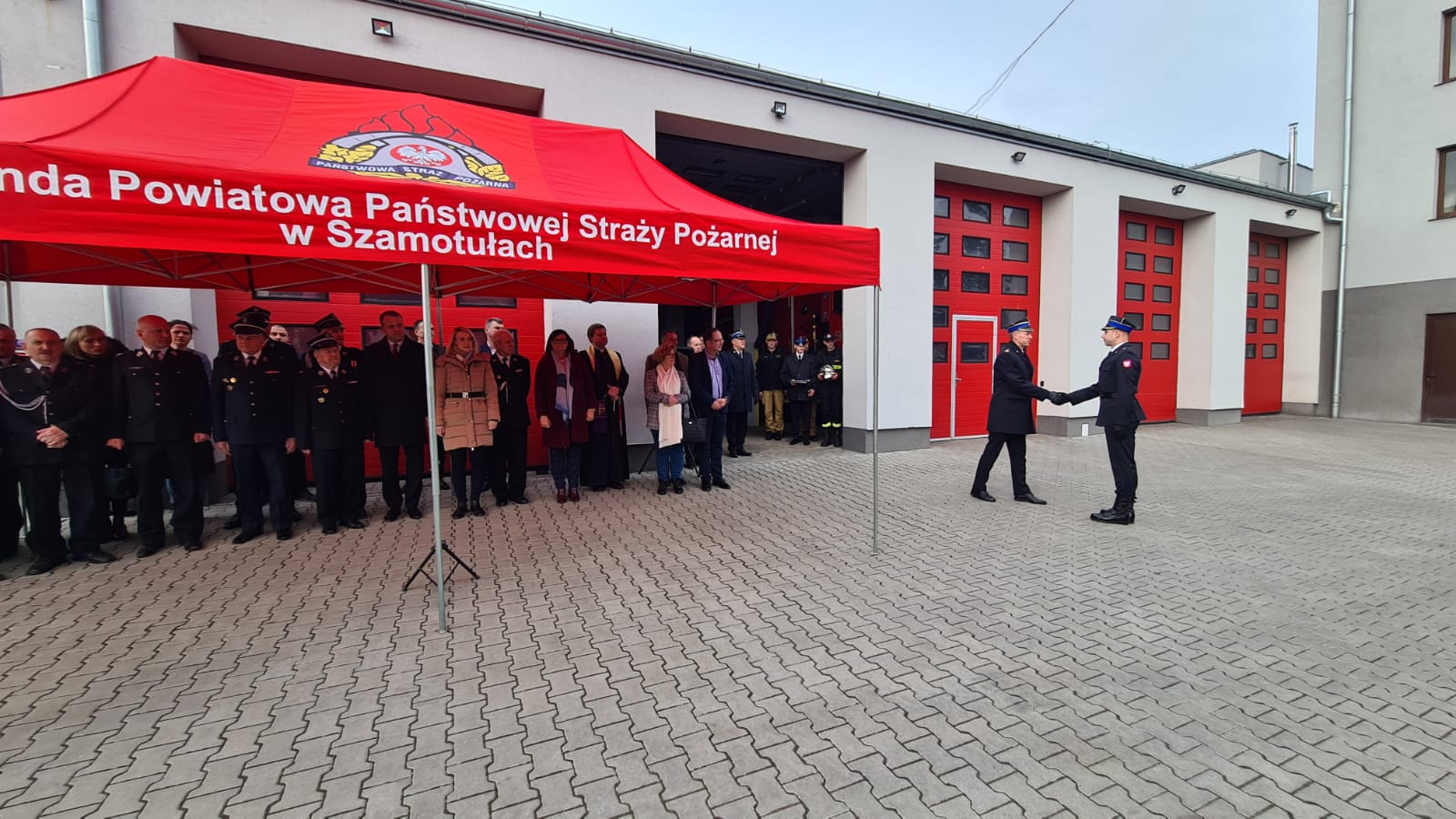 Przekazania kluczyków do nowego samochodu nastąpiło przez Poseł na Sejm Panią Martę Kubiak, Wojewodę Wielkopolskiego Michała Zielińskiego, Zastępcę Wielkopolskiego Komendanta Wojewódzkiego Państwowej Straży Pożarnej w Poznaniu bryg. Tomasza Grelaka, Starostę Powiatu Szamotulskiego Panią Beatę Hanyżak w asyście Komendanta Powiatowego PSP w Szamotułach st. bryg. Ireneusza Persa.