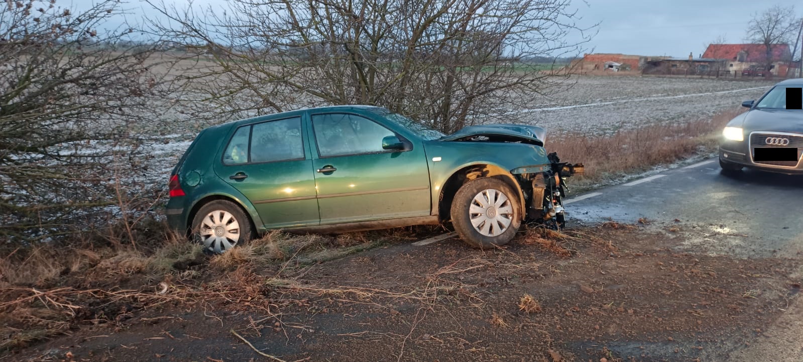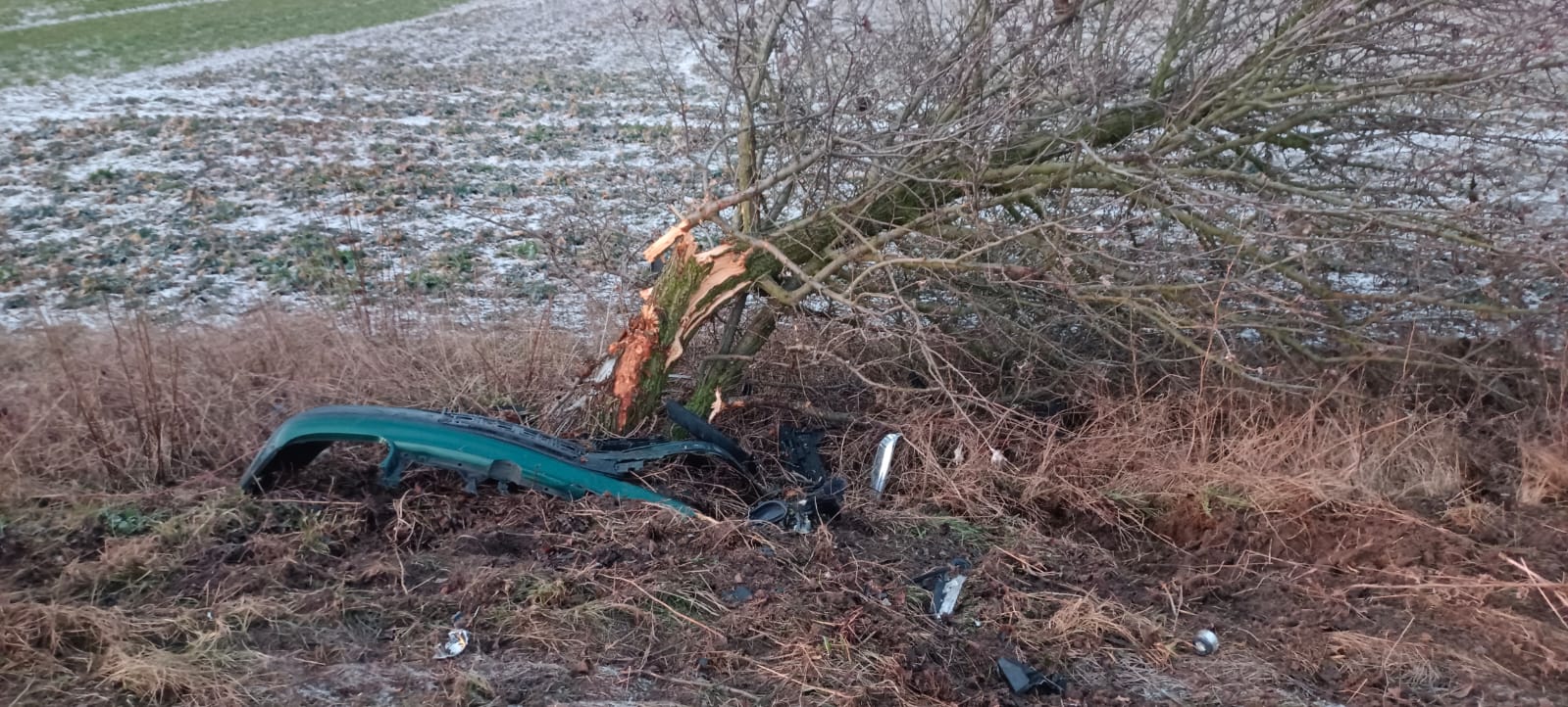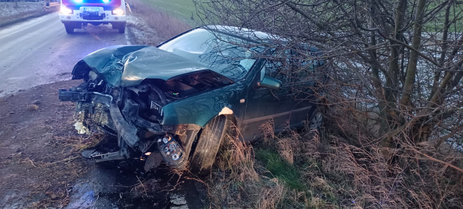 Po dojeździe na miejsce zdarzenia strażacy zastali samochód osobowy, który uderzył w drzewo. Kierujący opuścił pojazd przed przybyciem SP i znajdował się w pobliżu.