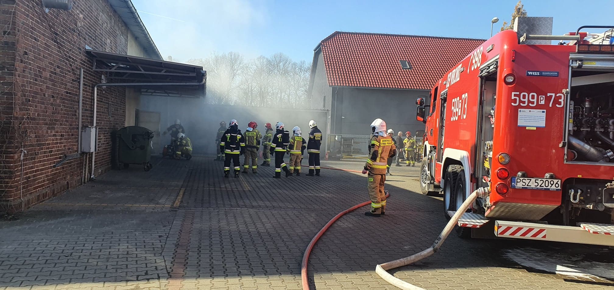Po dojeździe na miejsce zdarzenia strażacy zastali pożar filtrów w maszynie do śrutowania. Pracownicy opuścili halę produkcyjną przed przybyciem SP i znajdowali się na zewnątrz.