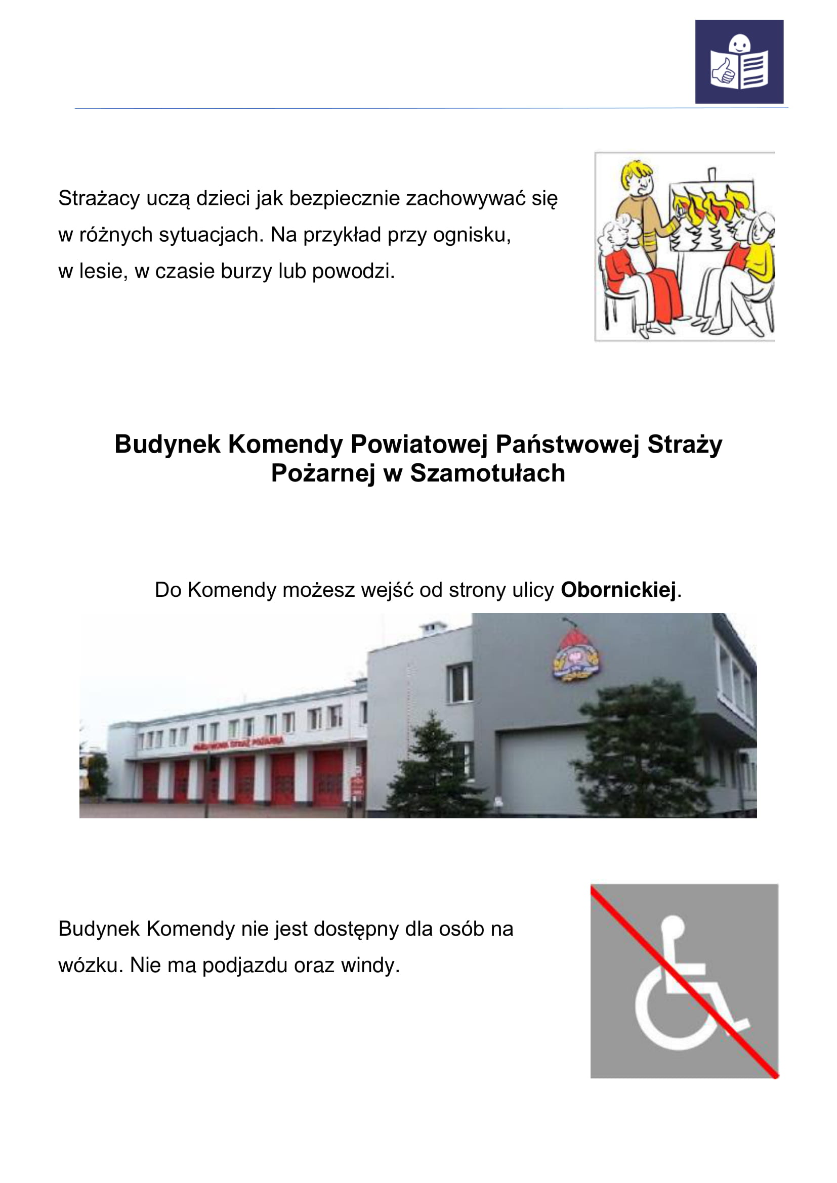 Materiał przygotowany wspólnie z Polskim Stowarzyszeniem na rzecz Osób z Niepełnosprawnością Intelektualną zawierający podstawowe informacje dotyczące Komendy Wojewódzkiej PSP w Poznaniu.