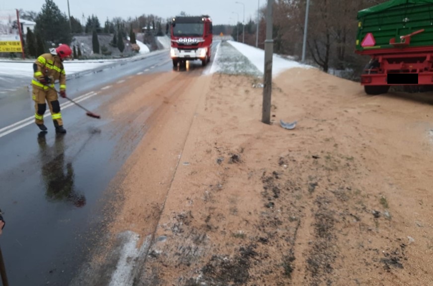 W czwartek, 4 lutego o godz. 7.41 do dyżurnego Stanowiska Kierowania Państwowej Straży Pożarnej w Szamotułach wpłynęło zgłoszenie o przewróconym ciągniku rolniczym oraz przyczepach w miejscowości Obrzycko.