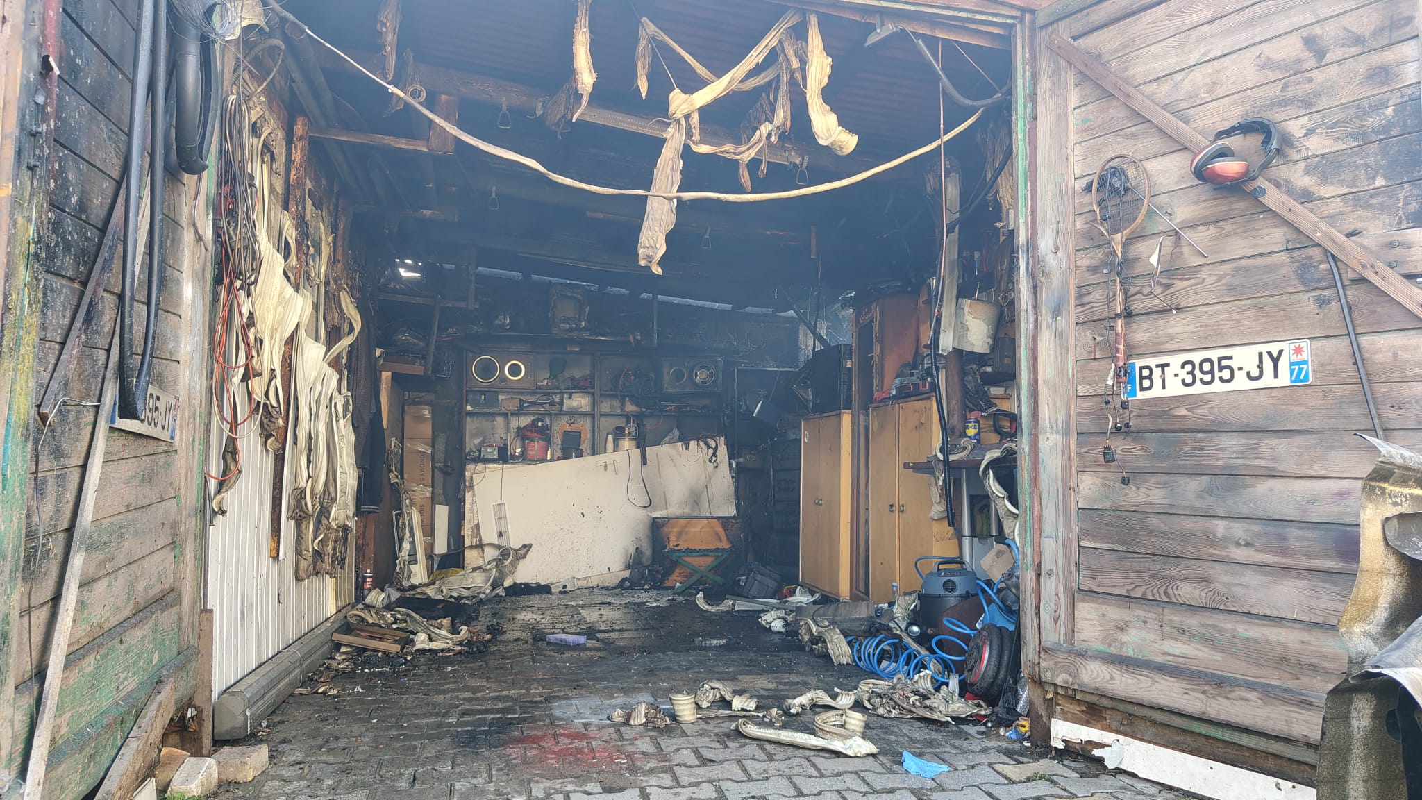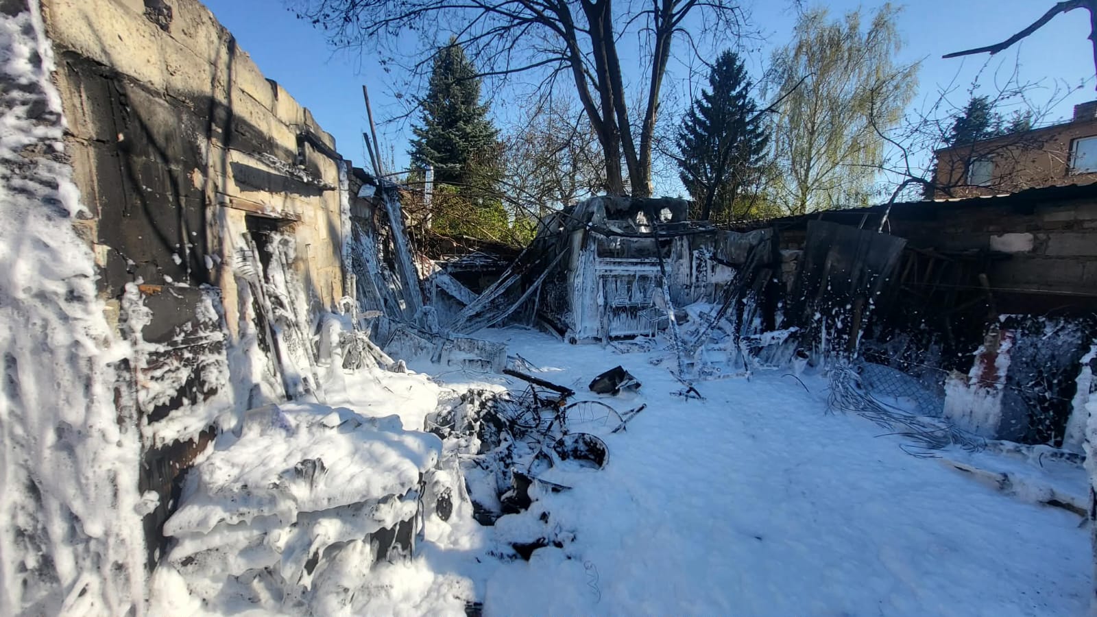 Po dojeździe na miejsce zdarzenia strażacy zastali pożar garażu i drewnianej wiaty, w pobliżu znajdował się trzy garaże, które były zagrożone pożarem. Właściciel podjął próbę gaszenia pożaru za pomocą podręcznego sprzętu gaśniczego.
