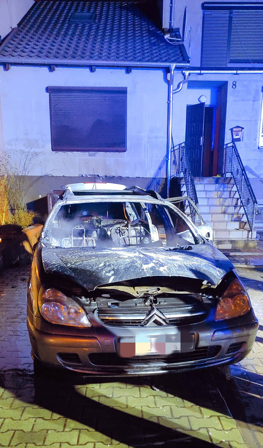 Pojazd znajdował się na podjeździe do garażu w pobliżu budynku mieszkalnego.