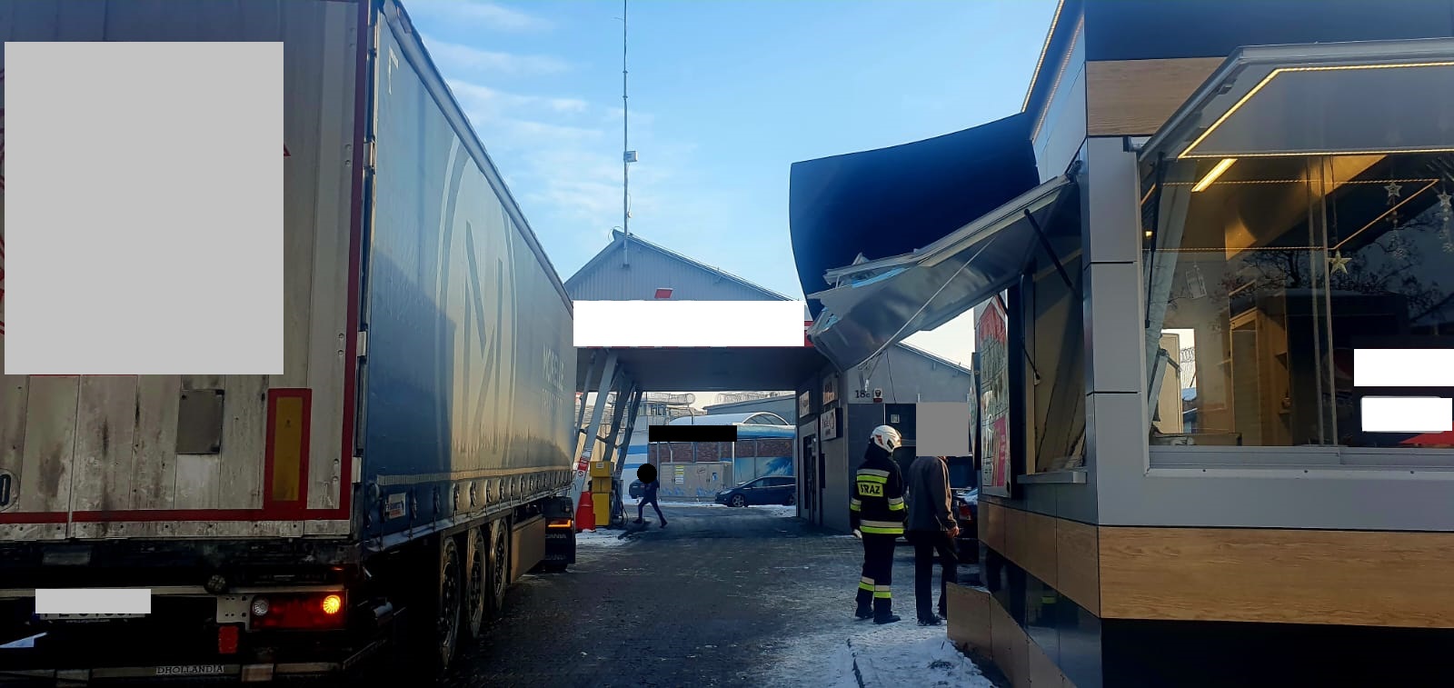 Po dojeździe na miejsce zdarzenia strażacy zastali samochód ciężarowy, który uderzył w lokal gastronomiczny.