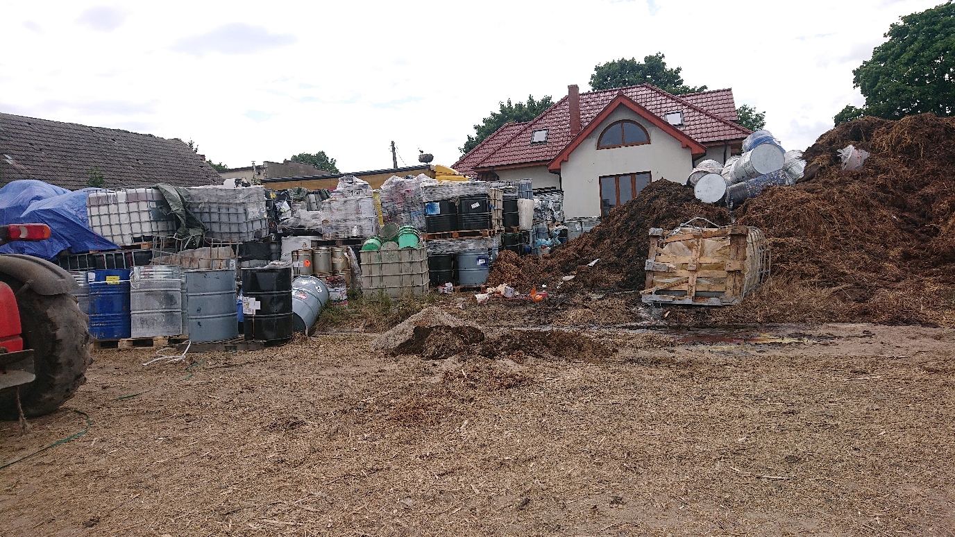 Po dojeździe na miejsce zdarzenia strażacy zastali na posesji beczki oraz zbiorniki typu mauzer z nieznaną substancją.
