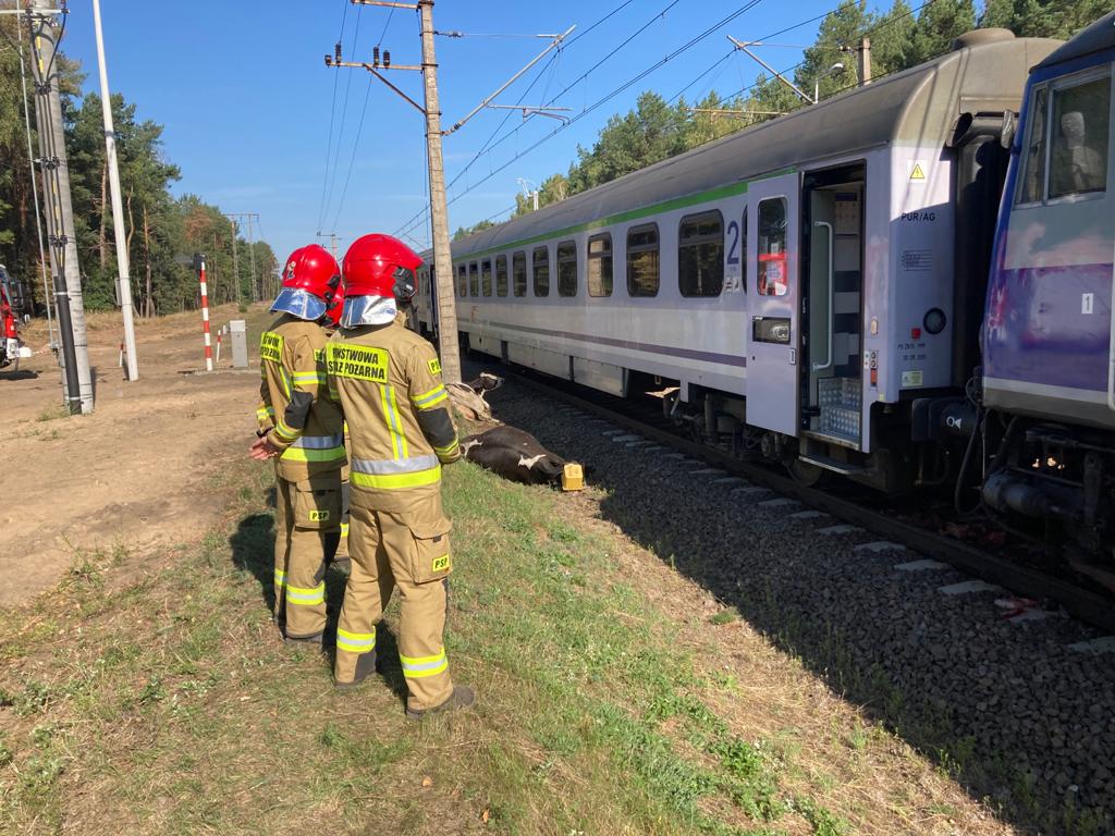 W dniu 16.08.2021r. o godzinie 08.26 Dyżurny Stanowiska Kierowania Państwowej Straży Pożarnej w Szamotułach przyjął zgłoszenie o potrąceniu krów na przejeździe kolejowym w Popowie.