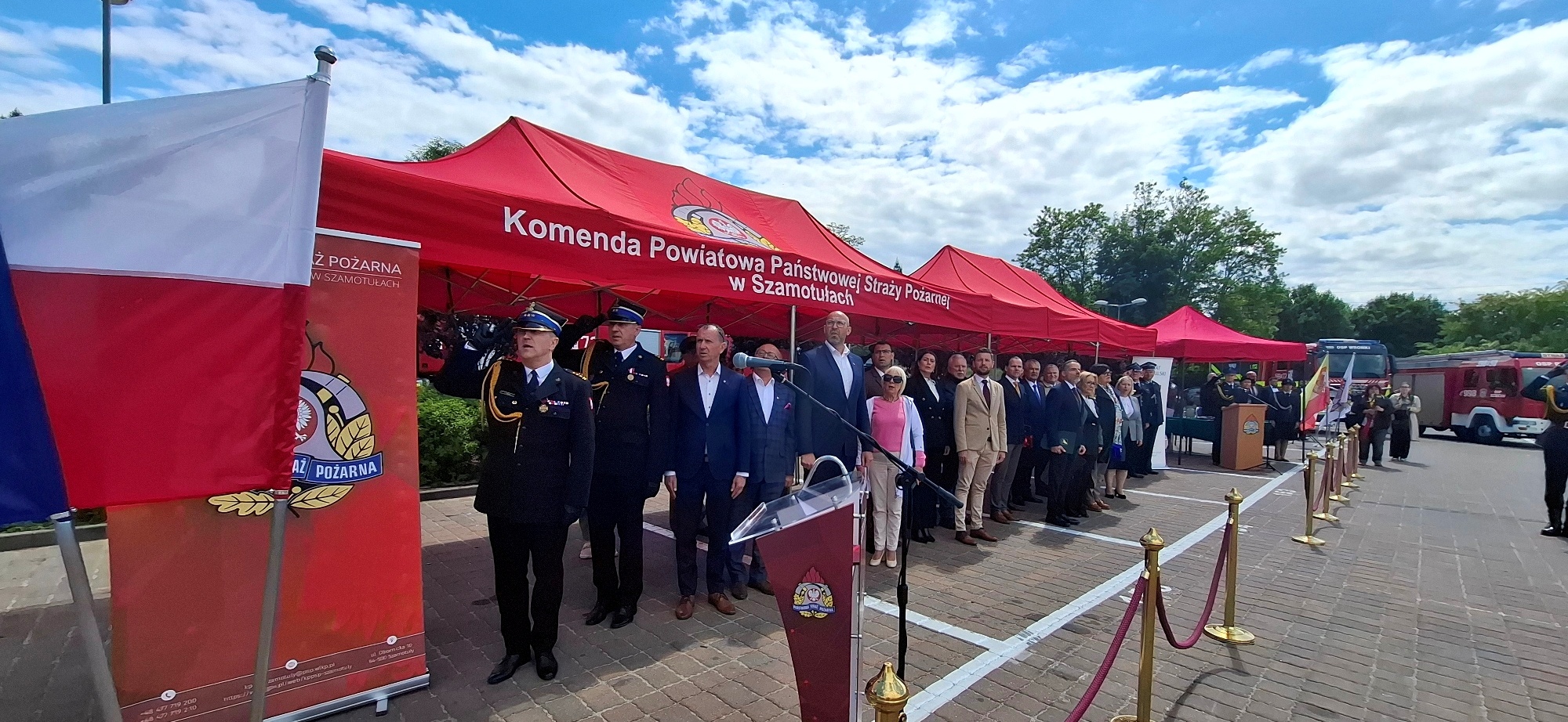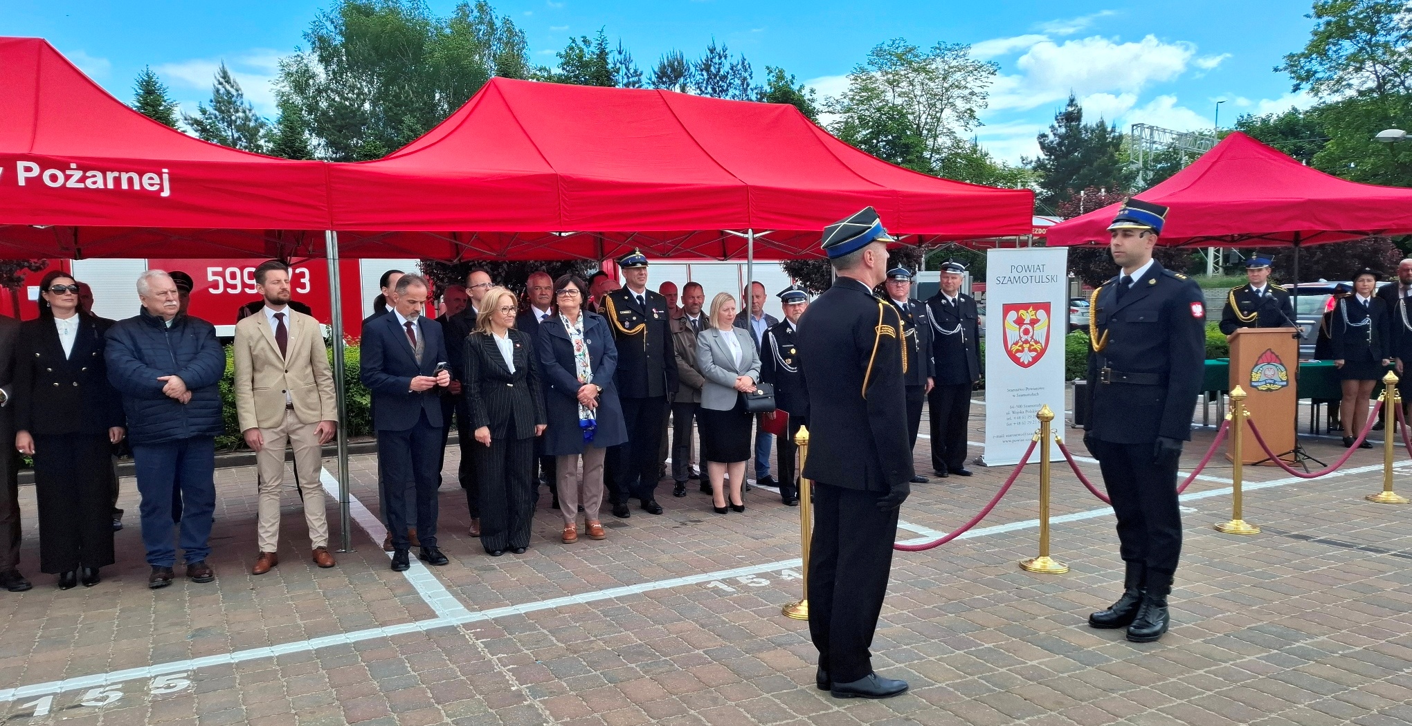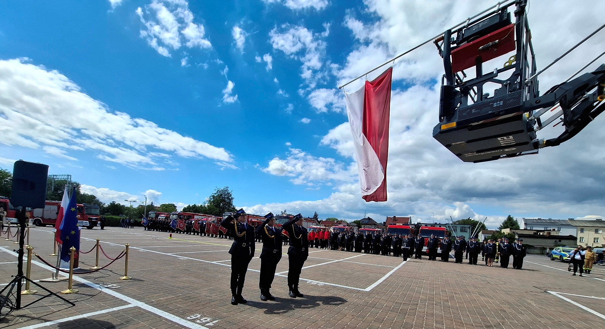 Zgodnie z ceremoniałem pożarniczym, uroczystość rozpoczęła się od złożenia meldunku st. bryg. Ireneuszowi Pers Komendantowi Powiatowemu Państwowej Straży Pożarnej w Szamotułach przez dowódcę uroczystości kpt. Jakuba Łyko. Następnie dokonano uroczystego podniesienia flagi państwowej oraz wspólnego odśpiewania hymnu narodowego.