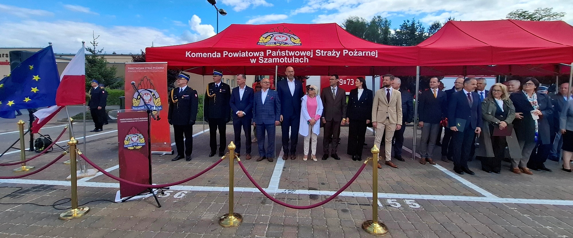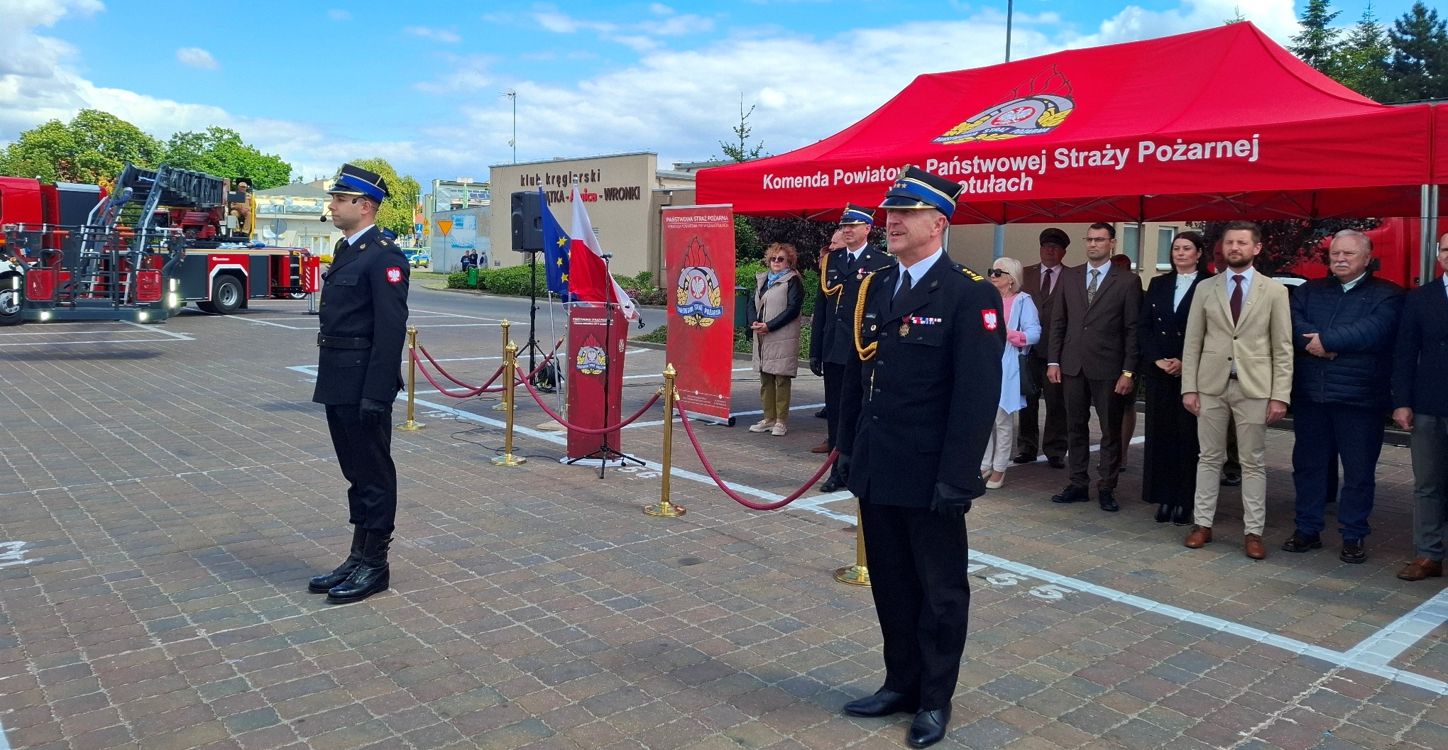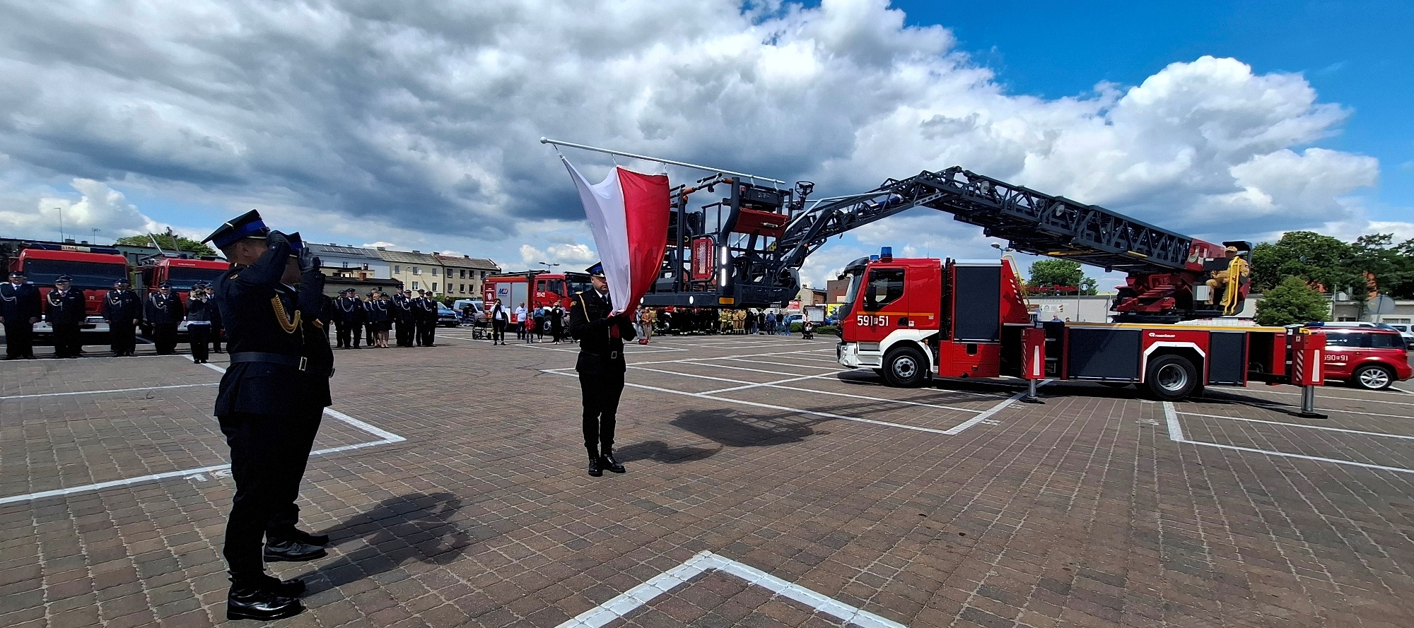 Zgodnie z ceremoniałem pożarniczym, uroczystość rozpoczęła się od złożenia meldunku st. bryg. Ireneuszowi Pers Komendantowi Powiatowemu Państwowej Straży Pożarnej w Szamotułach przez dowódcę uroczystości kpt. Jakuba Łyko. Następnie dokonano uroczystego podniesienia flagi państwowej oraz wspólnego odśpiewania hymnu narodowego.