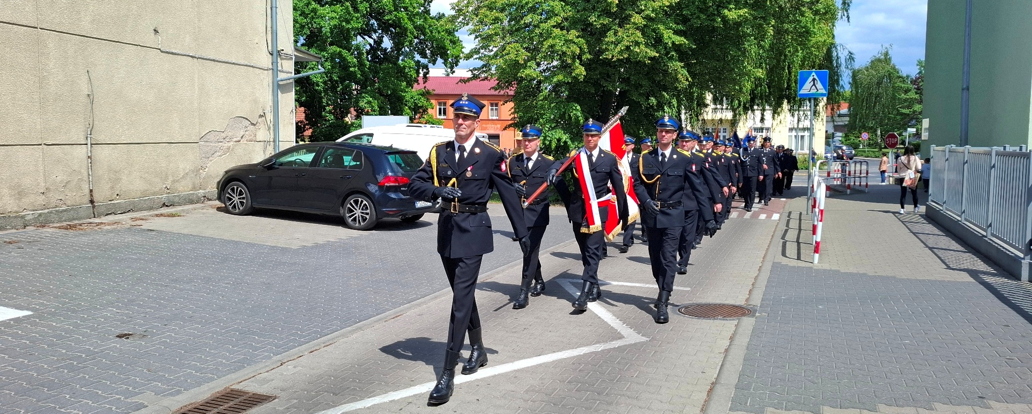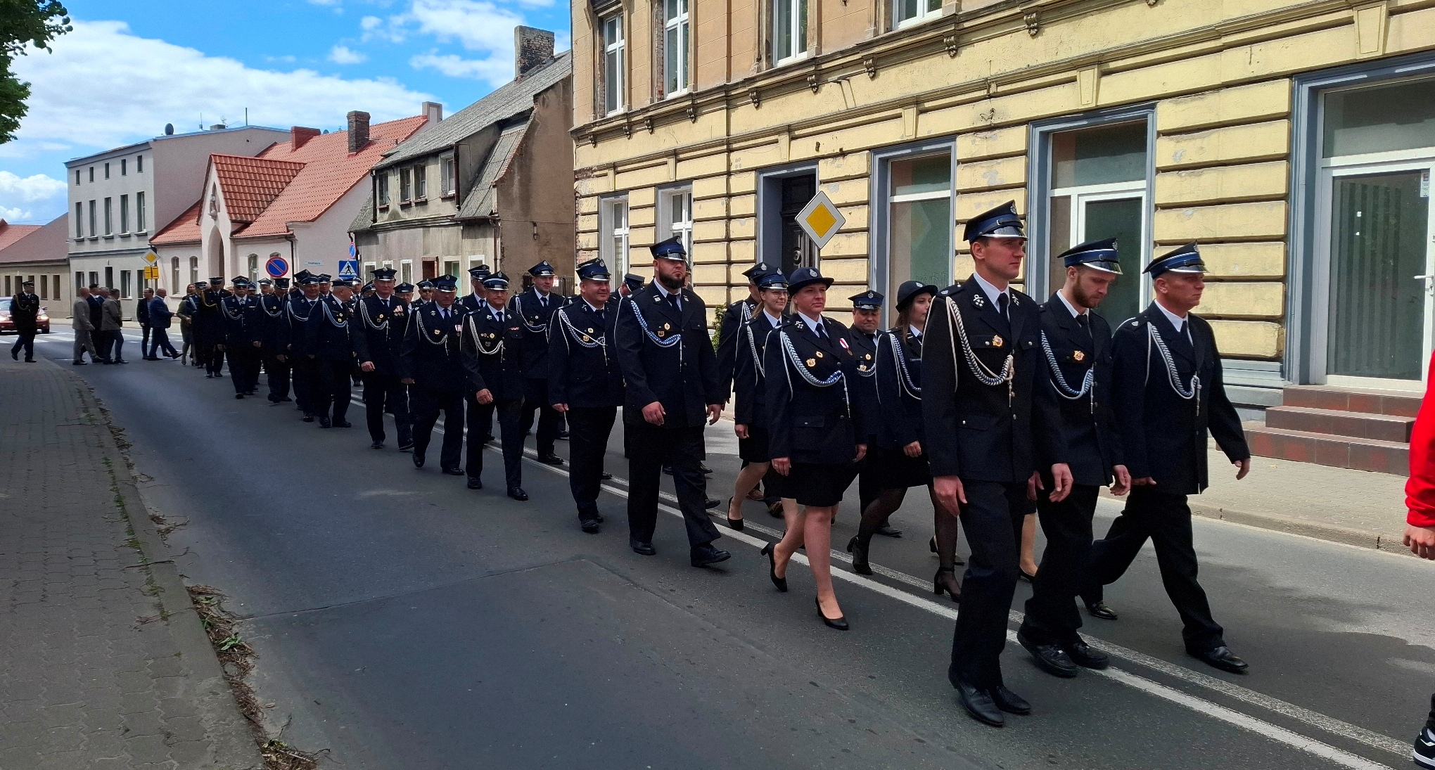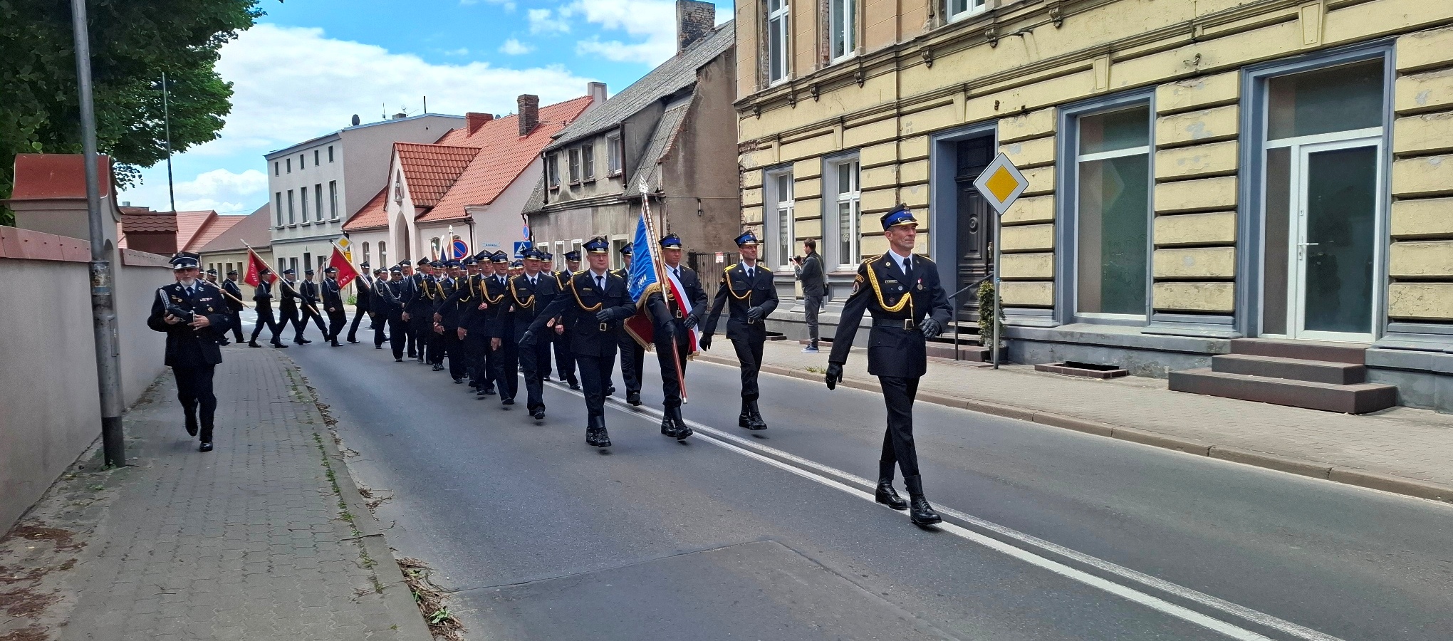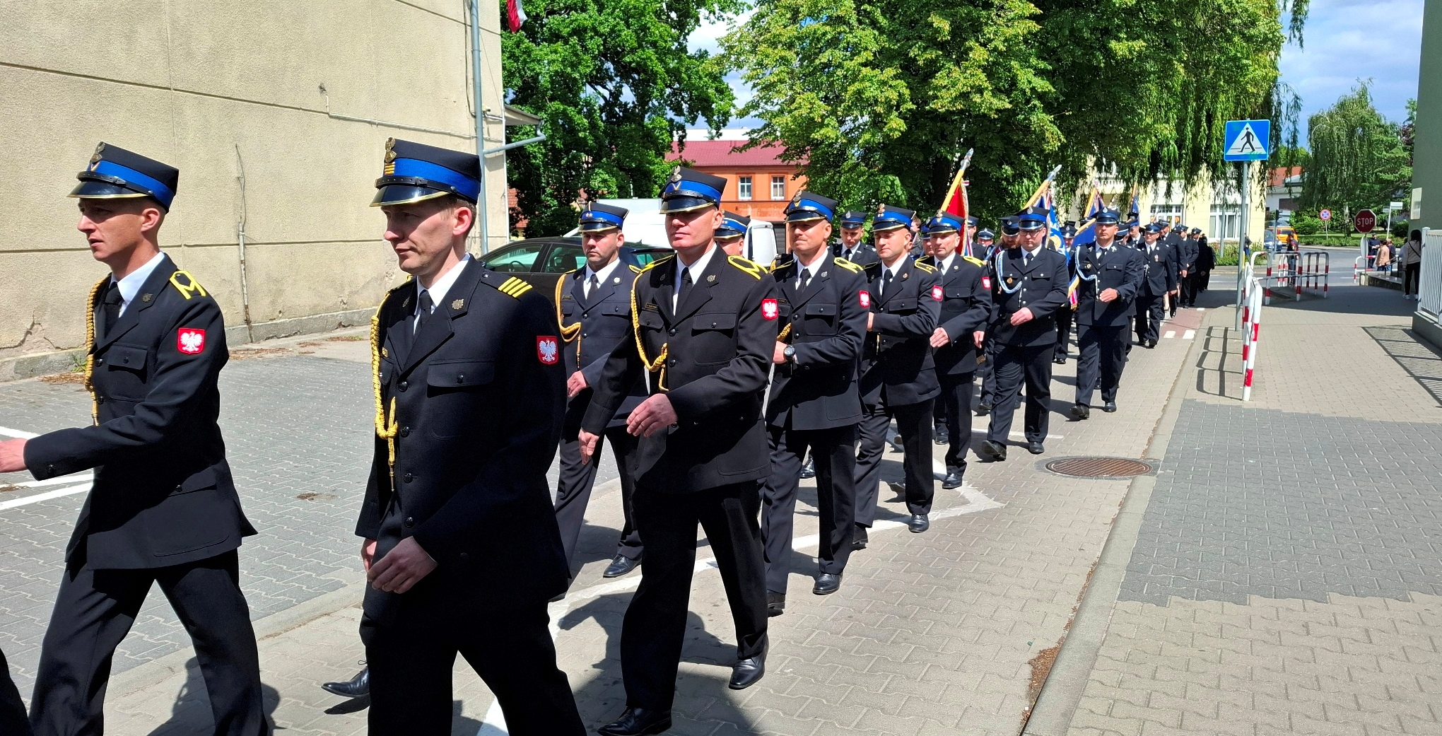 Po mszy nastąpił przemarsz ulicami miasta na Plac Targowy we Wronkach, gdzie odbyły się główne uroczystości. Przemarsz prowadził kwintet muzyczny Castle Brass Quintet, za którą maszerował poczet sztandarowy Państwowej Straży Pożarnej w Szamotułach oraz pododdział Komendy Powiatowej Państwowej Straży Pożarnej w Szamotułach prowadzony przez asp. sztab. Adama Wiernickiego. W dalszej kolejności szły sztandary jednostek OSP powiatu szamotulskiego, delegacje OSP z terenu powiatu, zaproszeni goście oraz mieszkańcy powiatu szamotulskiego.