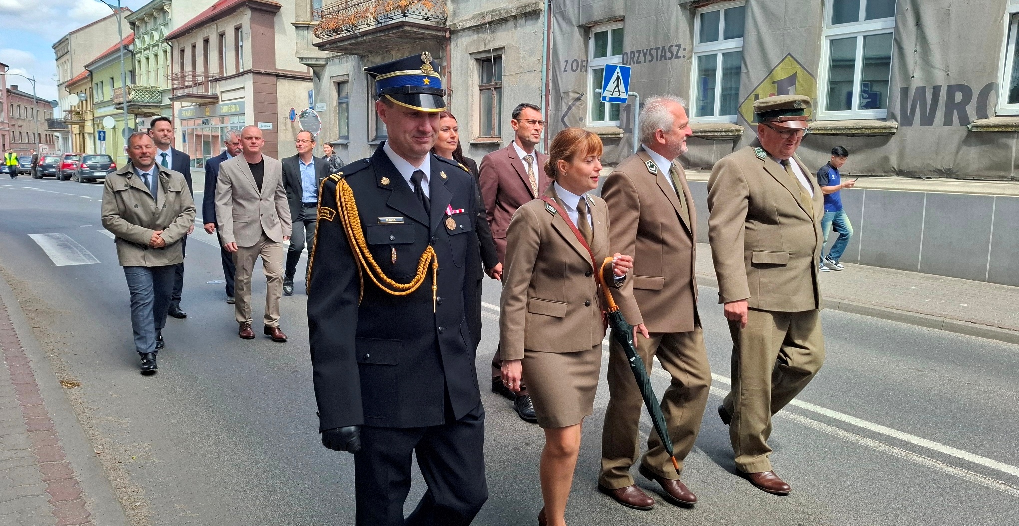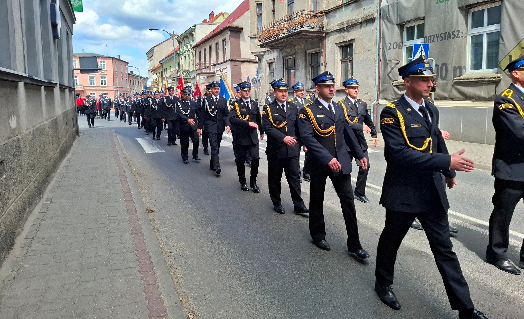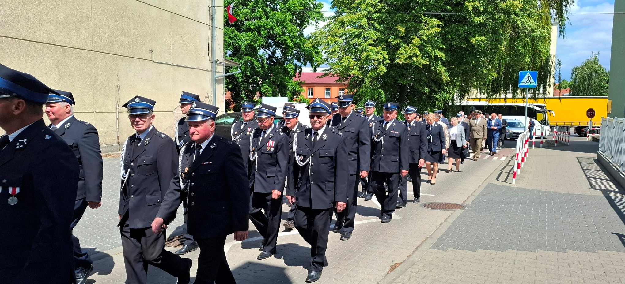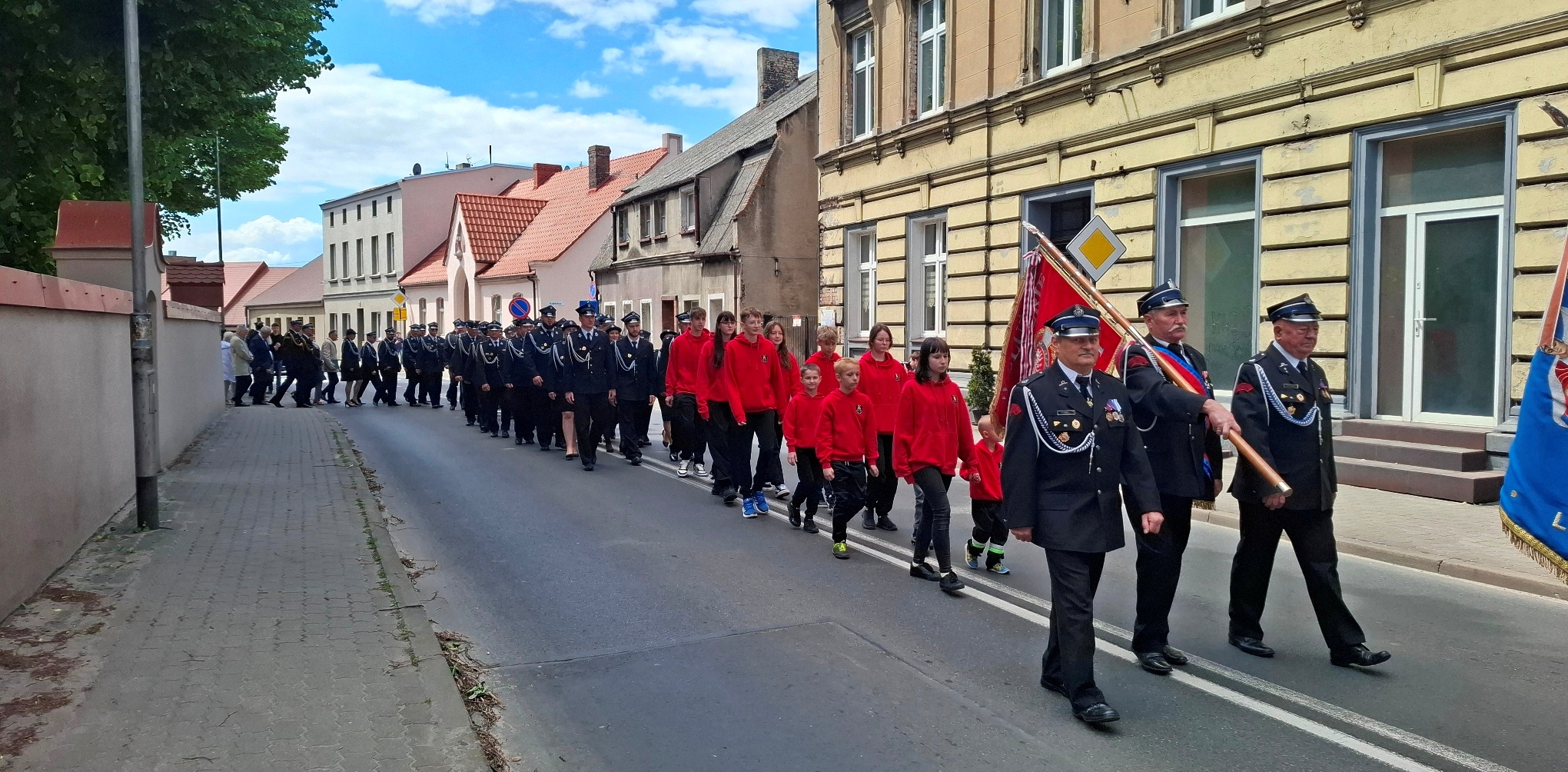 Po mszy nastąpił przemarsz ulicami miasta na Plac Targowy we Wronkach, gdzie odbyły się główne uroczystości. Przemarsz prowadził kwintet muzyczny Castle Brass Quintet, za którą maszerował poczet sztandarowy Państwowej Straży Pożarnej w Szamotułach oraz pododdział Komendy Powiatowej Państwowej Straży Pożarnej w Szamotułach prowadzony przez asp. sztab. Adama Wiernickiego. W dalszej kolejności szły sztandary jednostek OSP powiatu szamotulskiego, delegacje OSP z terenu powiatu, zaproszeni goście oraz mieszkańcy powiatu szamotulskiego.