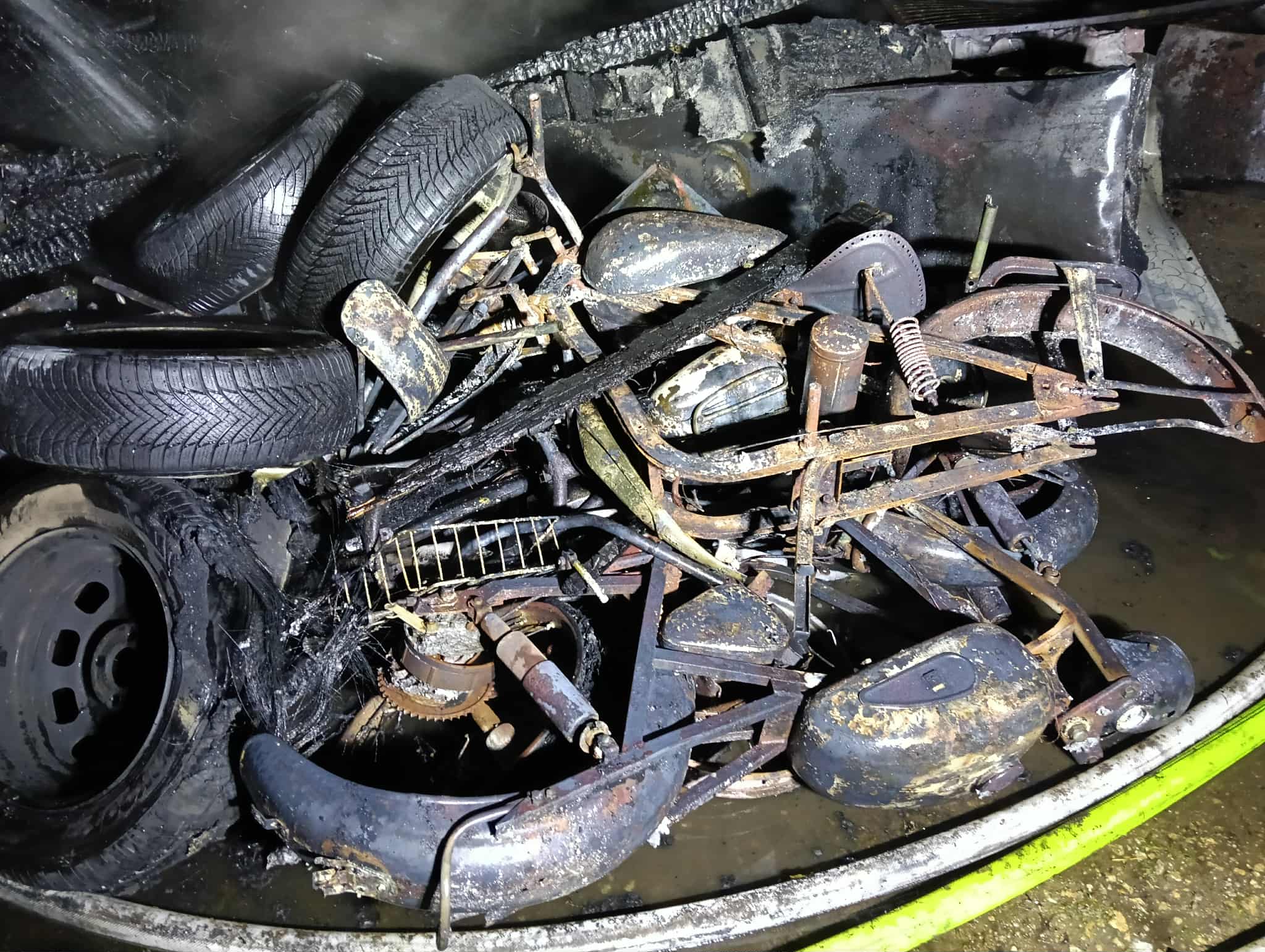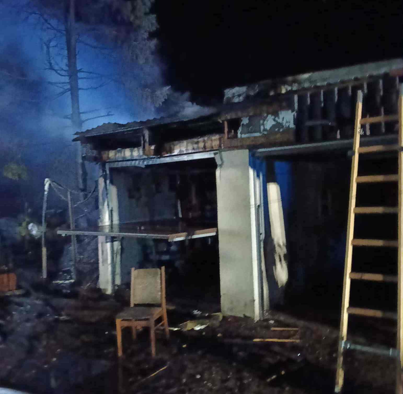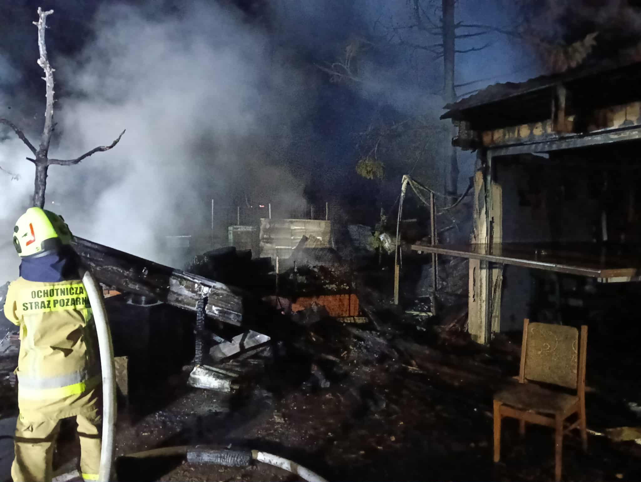 Spaleniu uległy dwie drewniane szopy, część murowanego garażu, motocykle, tokarnia, piła taśmowa, elektronarzędzia, betoniarka, wyposażenie garażu, ule 15szt. oraz dwa drzewa w pobliżu.