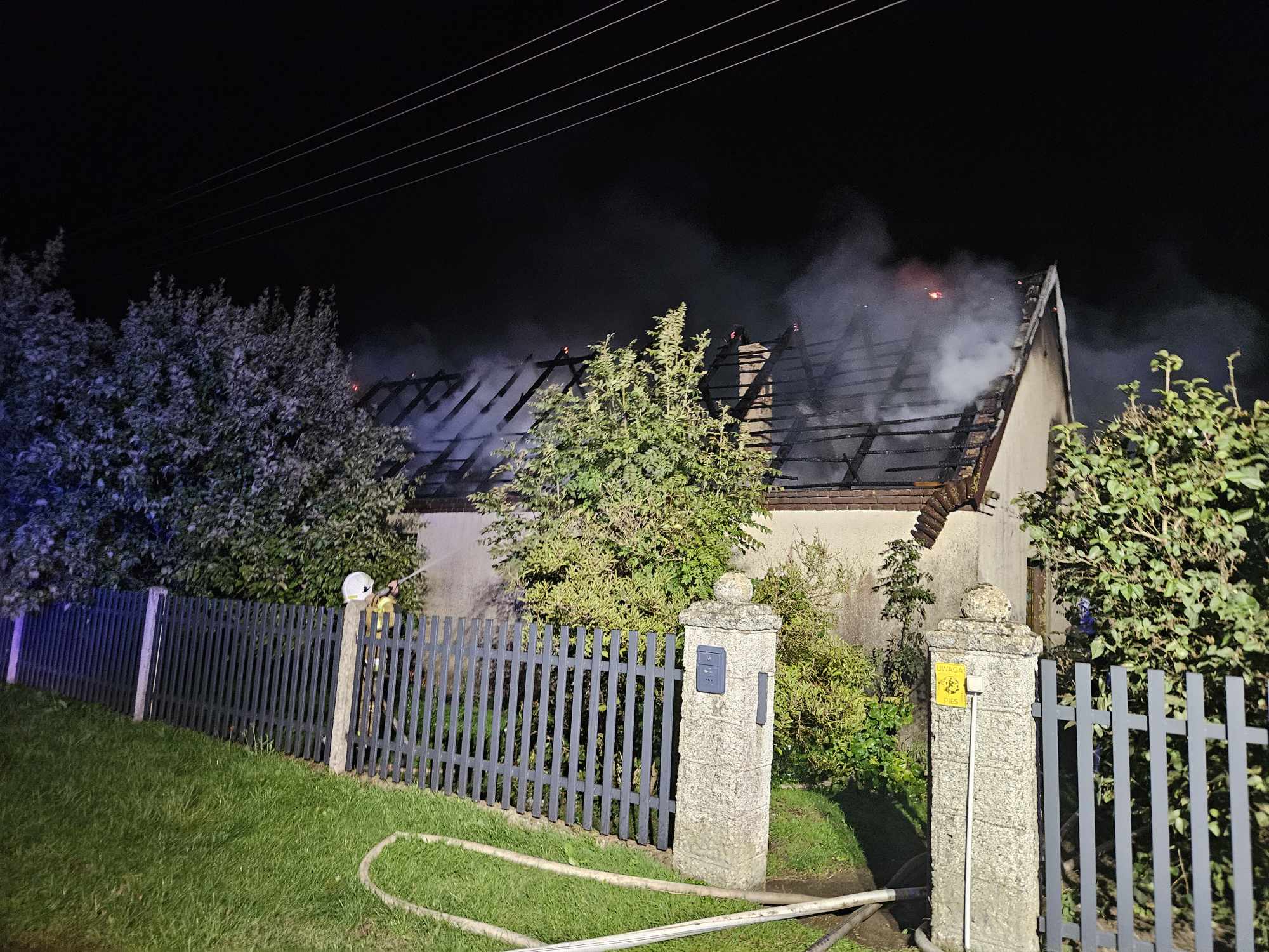 Po dojeździe na miejsce zdarzenia strażacy zastali dach budynku gospodarczego na powierzchni ok. 150 m2, który w całości był objęty ogniem. W pobliżu znajdował się budynek mieszkalny i dwa samochody osobowe, natomiast na poddaszu budynku znajdowały się baloty słomy.