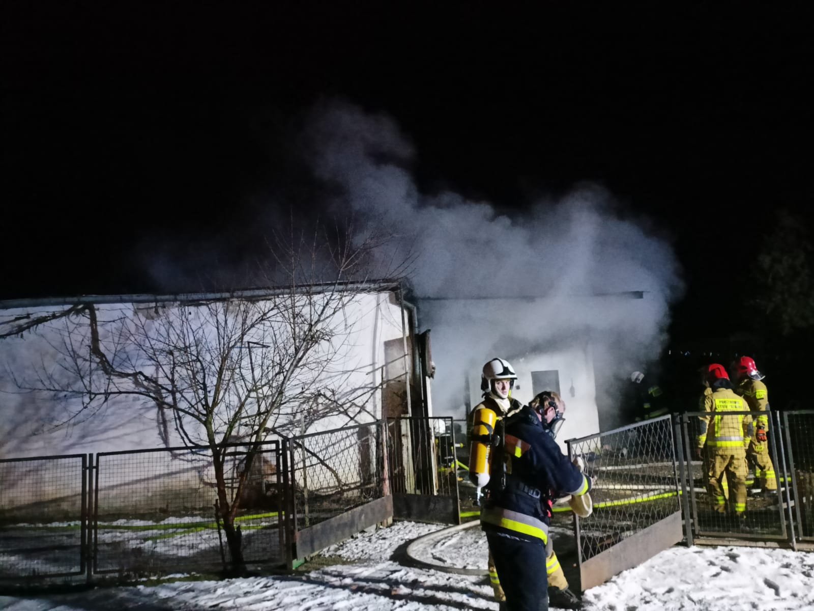Po dojeździe na miejsce zdarzenia strażacy zastali pożar budynku gospodarczego oraz garażu. W pomieszczeniach znajdował się sprzęt rolniczy, motocykl, narzędzia warsztatowe i ogrodnicze.