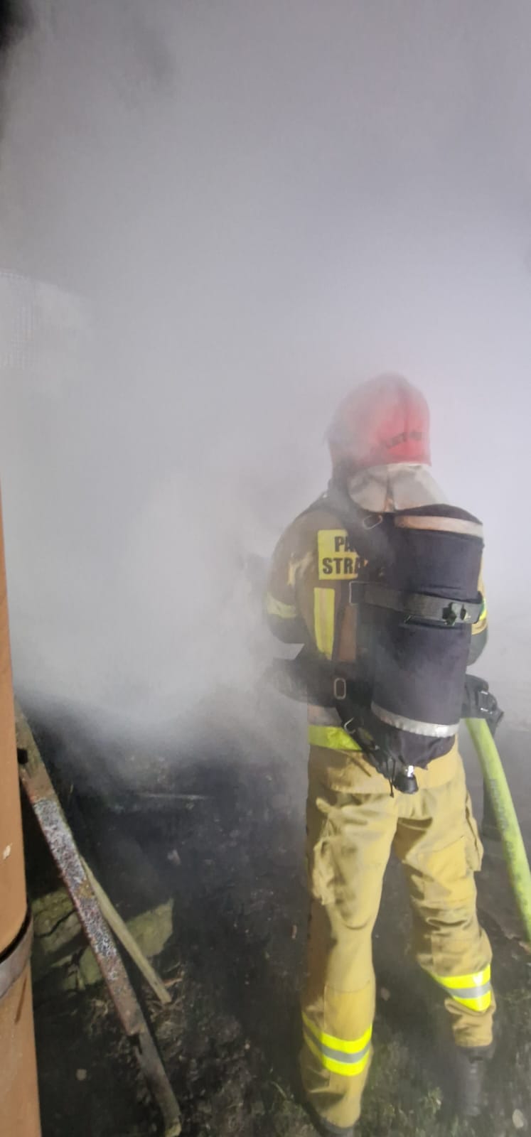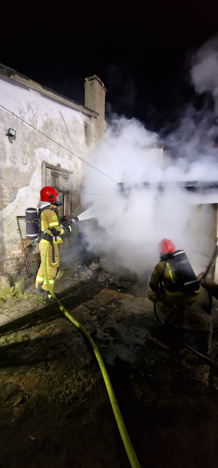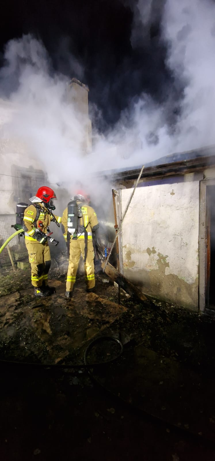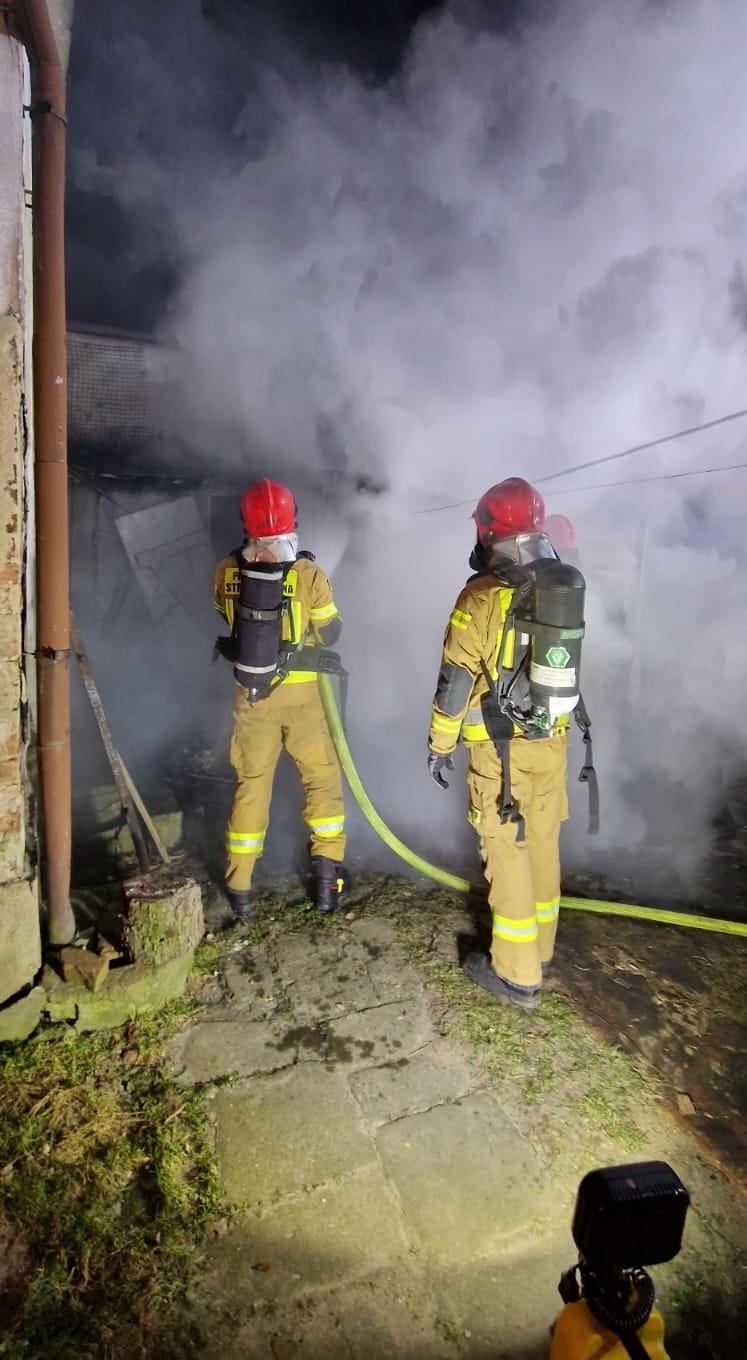 Po dojeździe na miejsce zdarzenia strażacy zastali pożar budynku gospodarczego, w którym znajdowało się drewno. Kilkanaście metrów dalej znajdował się budynek mieszkalny i garaż.