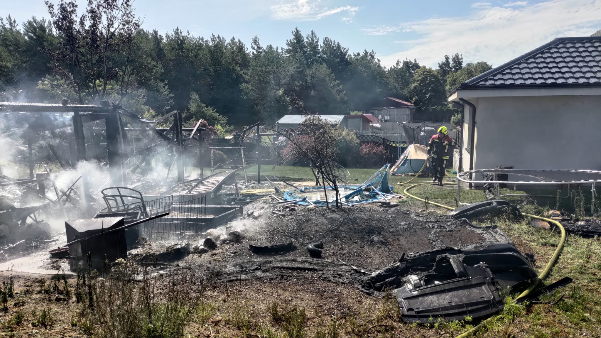 W sobotę, 15 lipca o godz. 9.57 do dyżurnego Stanowiska Kierowania Państwowej Straży Pożarnej w Szamotułach wpłynęło zgłoszenie o pożarze drewnianego garażu w miejscowości Obrzycko na ul. Jodłowej.