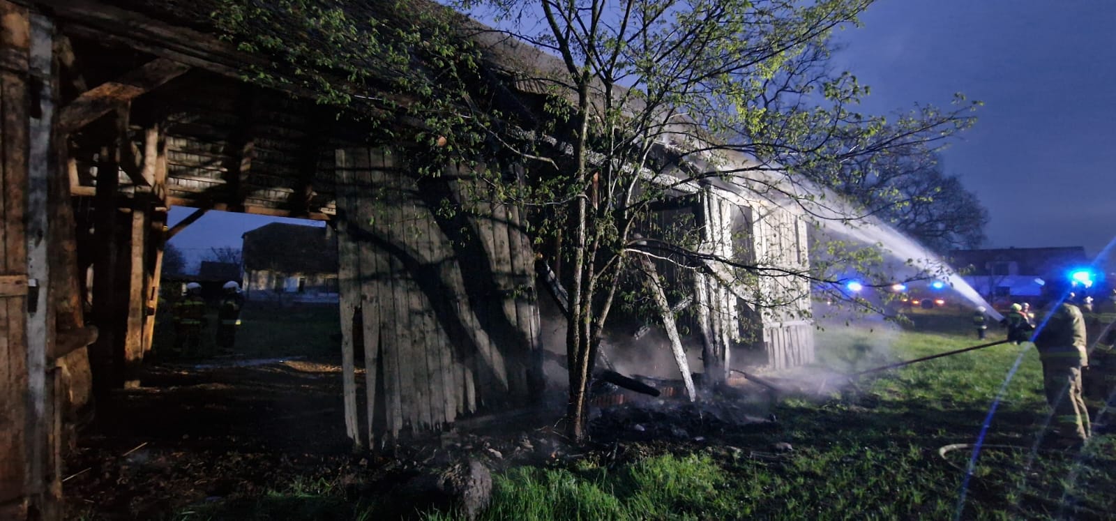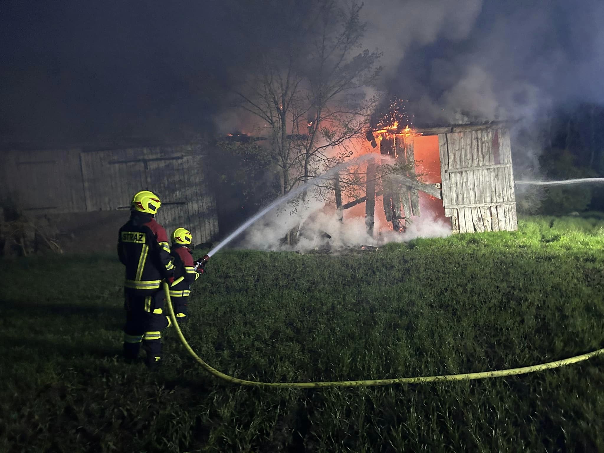 Po dojeździe na miejsce zdarzenia strażacy zastali pożar drewnianej stodoły.