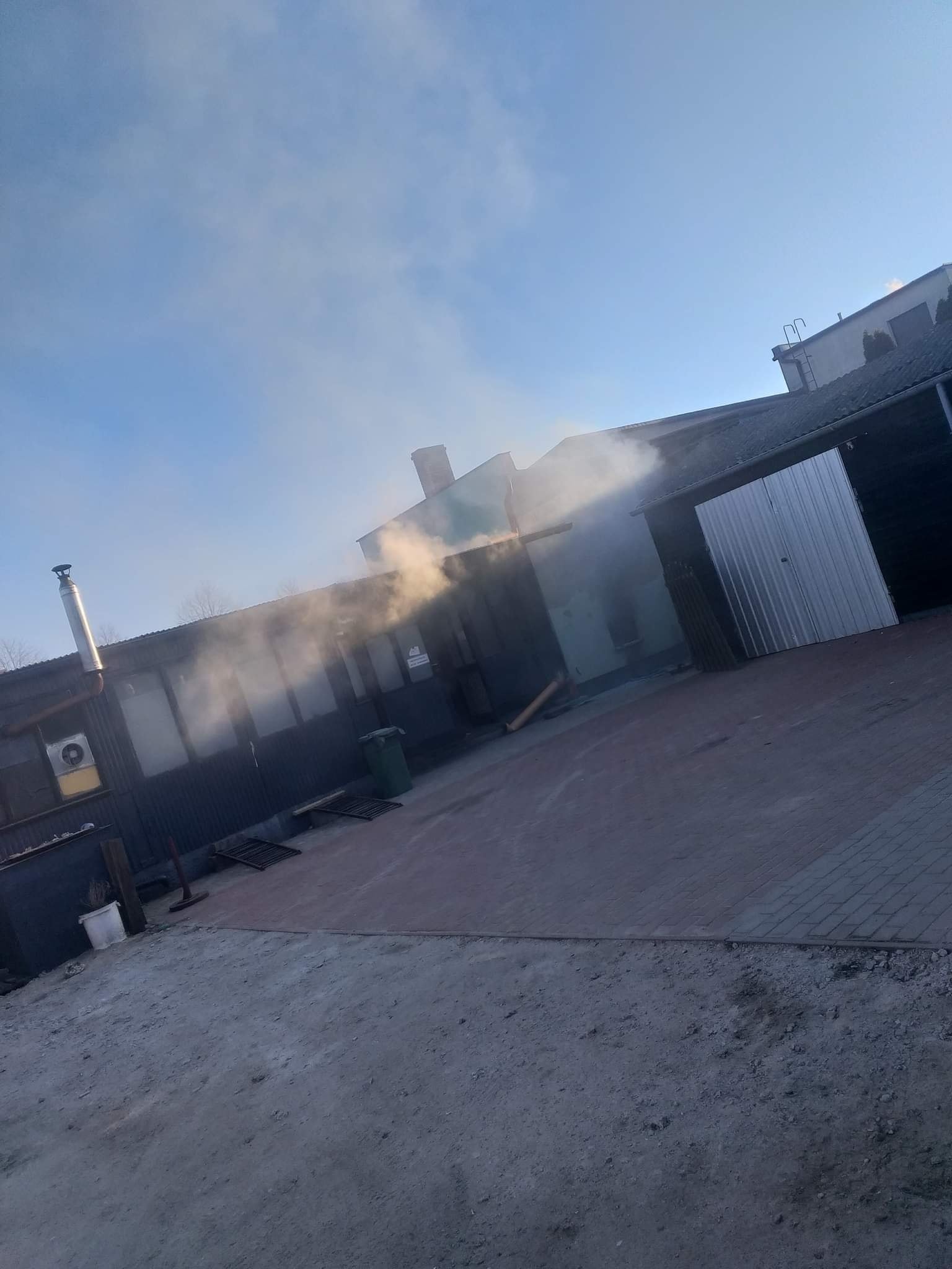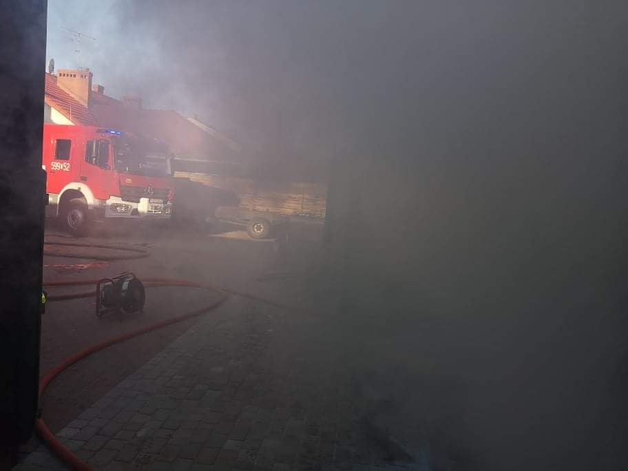 Po dojeździe na miejsce zdarzenia strażacy zastali silne zadymienie w pomieszczeniu kotłowni budynku gospodarczego. W wyniku przeprowadzonego rozpoznania ustalono, że doszło do pożaru trocin oraz drewna.