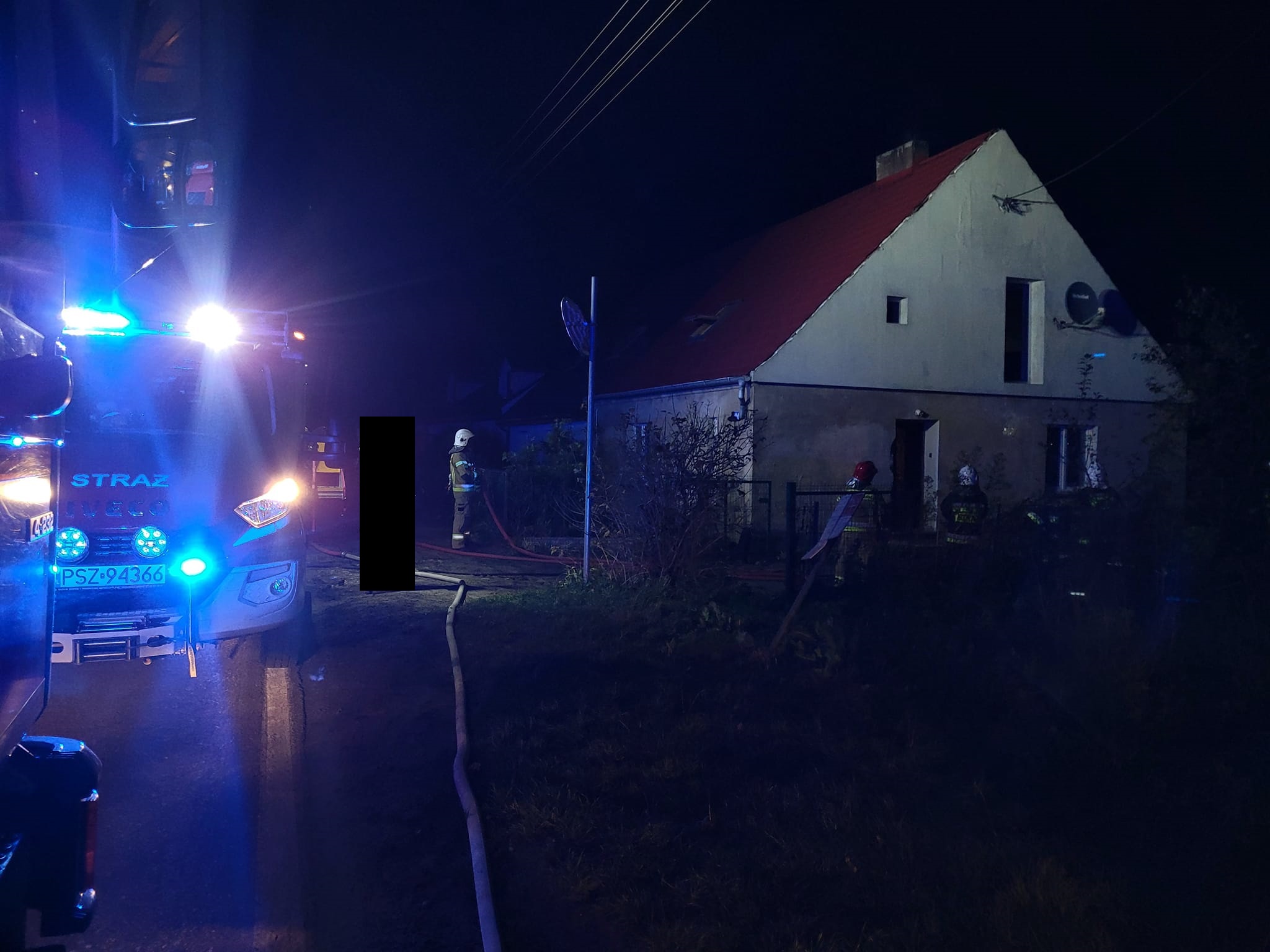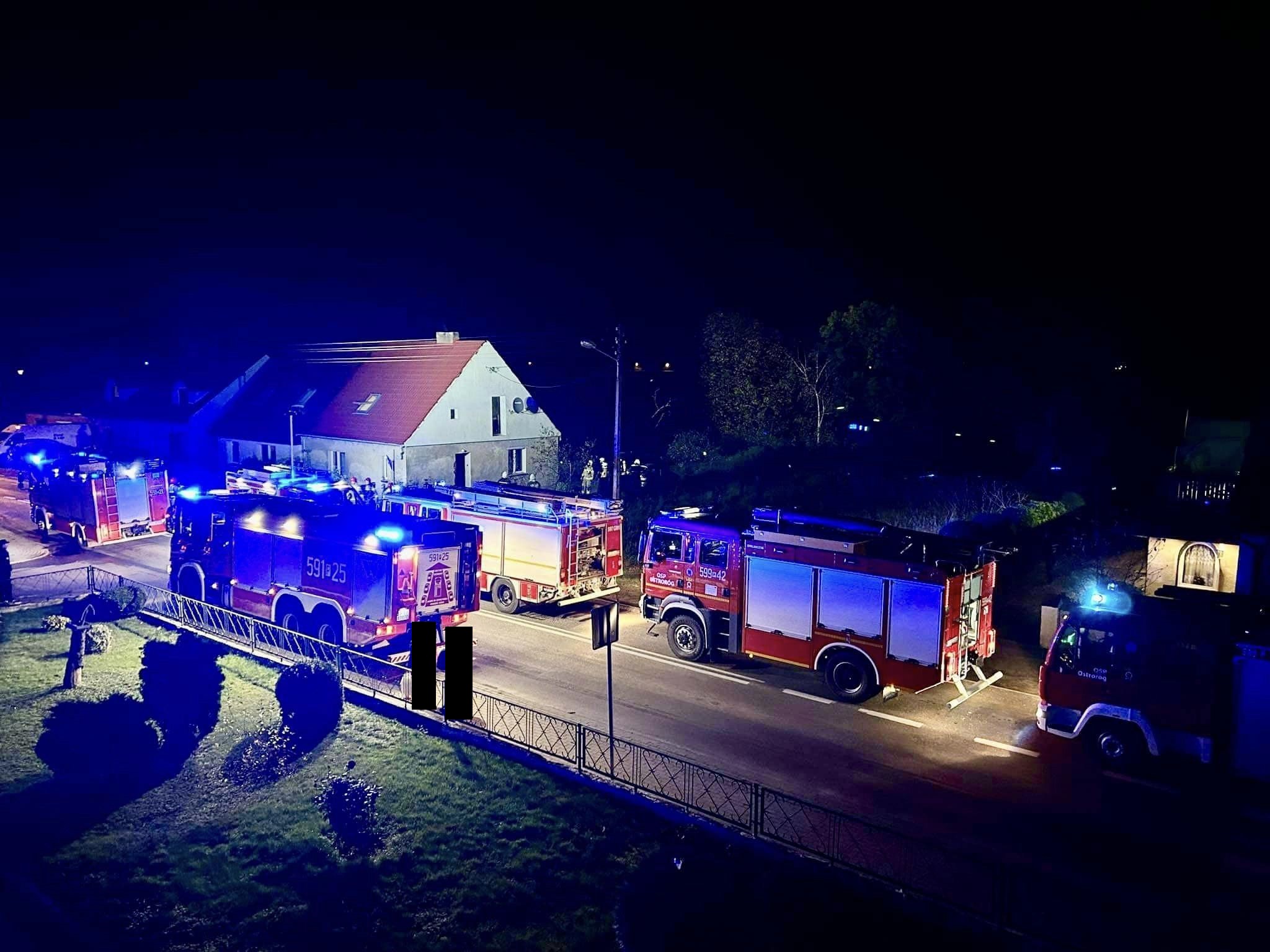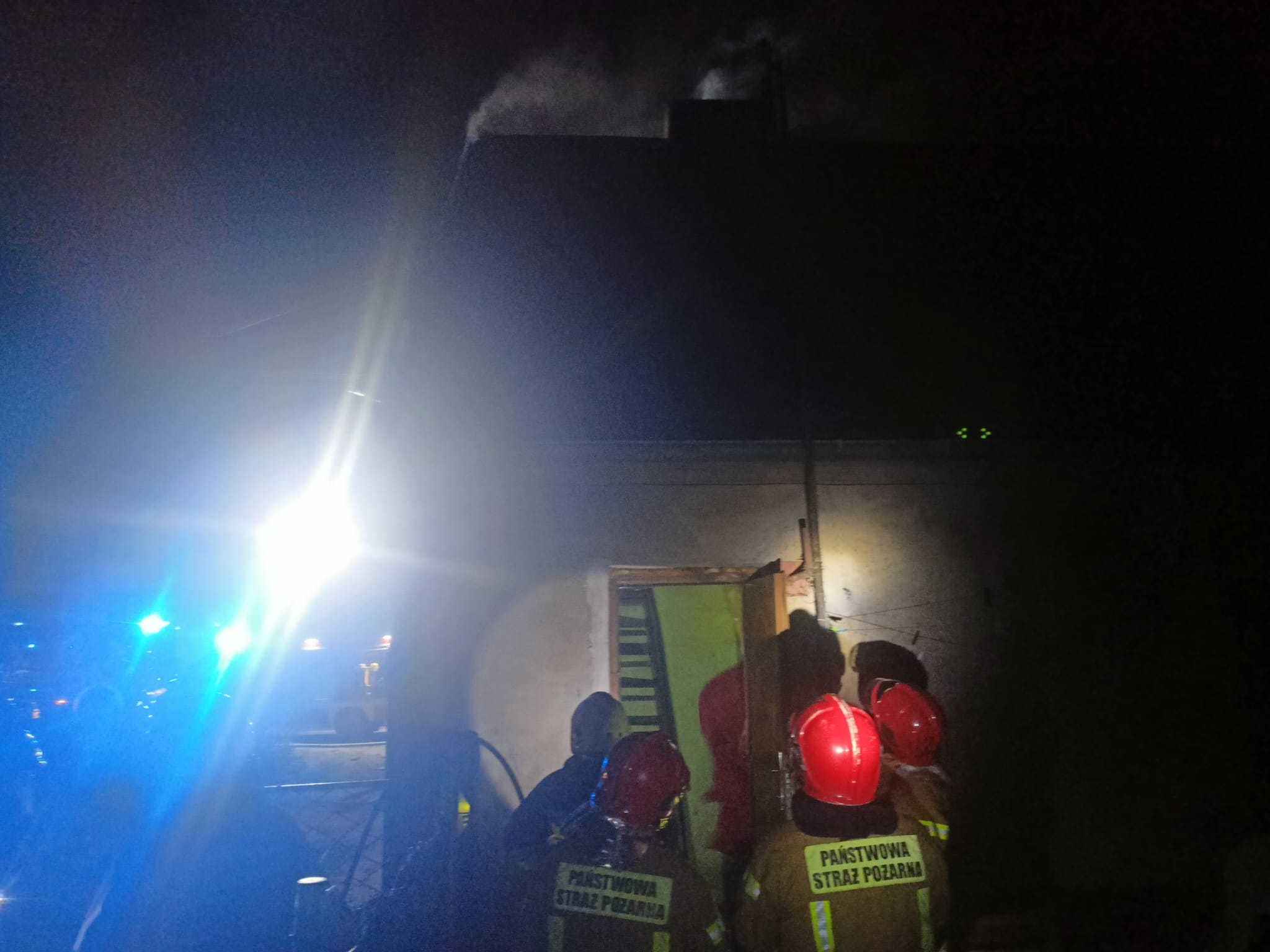 Po dojeździe na miejsce zdarzenia strażacy zastali pożar w pomieszczeniu kuchni na poddaszu budynku mieszkalnego. Mieszkańcy opuścili budynek przed przybyciem SP i znajdowali się na zewnątrz – brak osób poszkodowanych.
