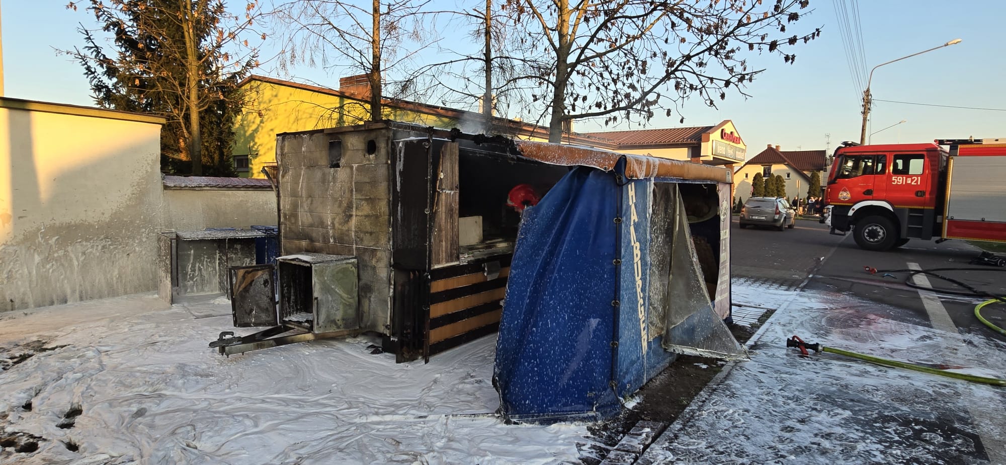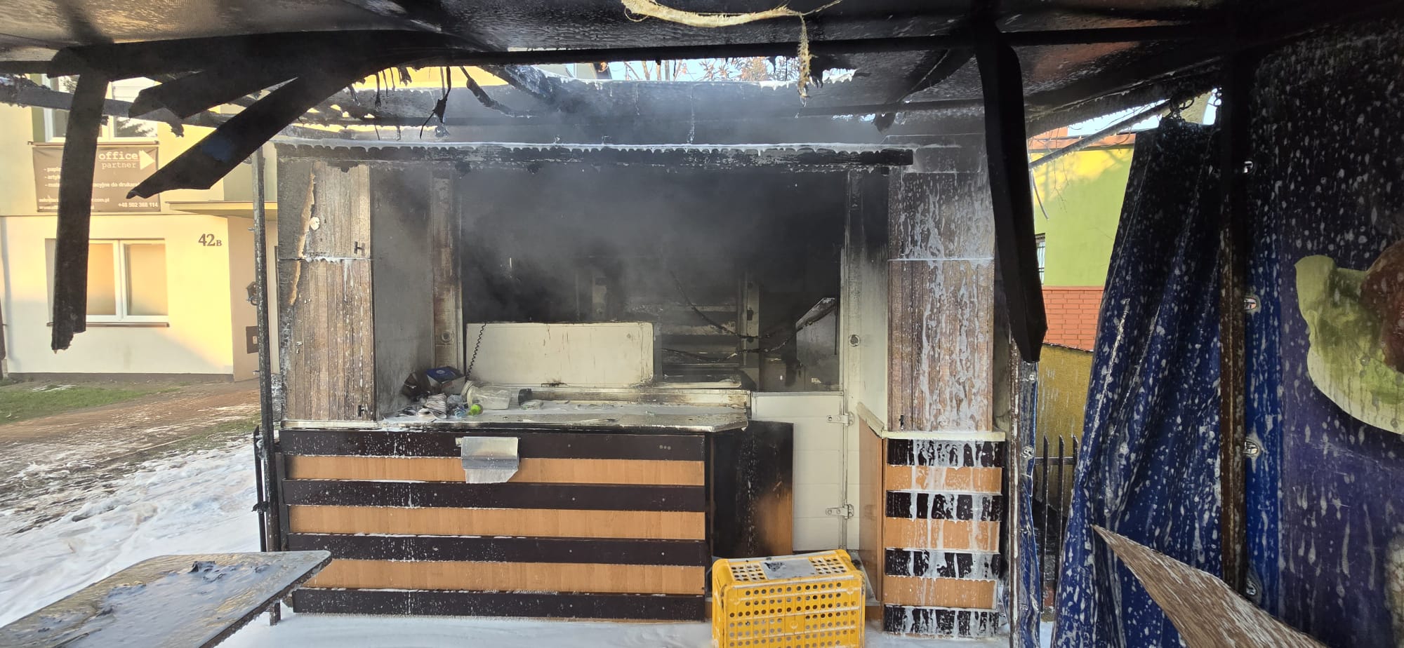 Spaleniu uległ lokal gastronomiczny z wyposażeniem.