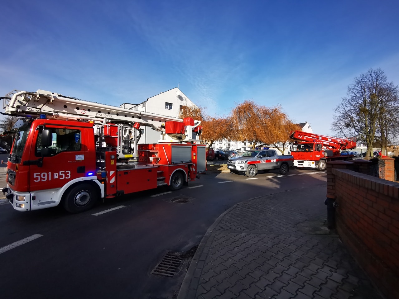 Oprócz czterech zastępów z Jednostki Ratowniczo-Gaśniczej w Szamotułach do zdarzenia wyjechały także wozy bojowe OSP Pniewy, OSP Podrzewie, OSP Duszniki, OSP Szamotuły, Zespół Ratownictwa Medycznego oraz Policja.