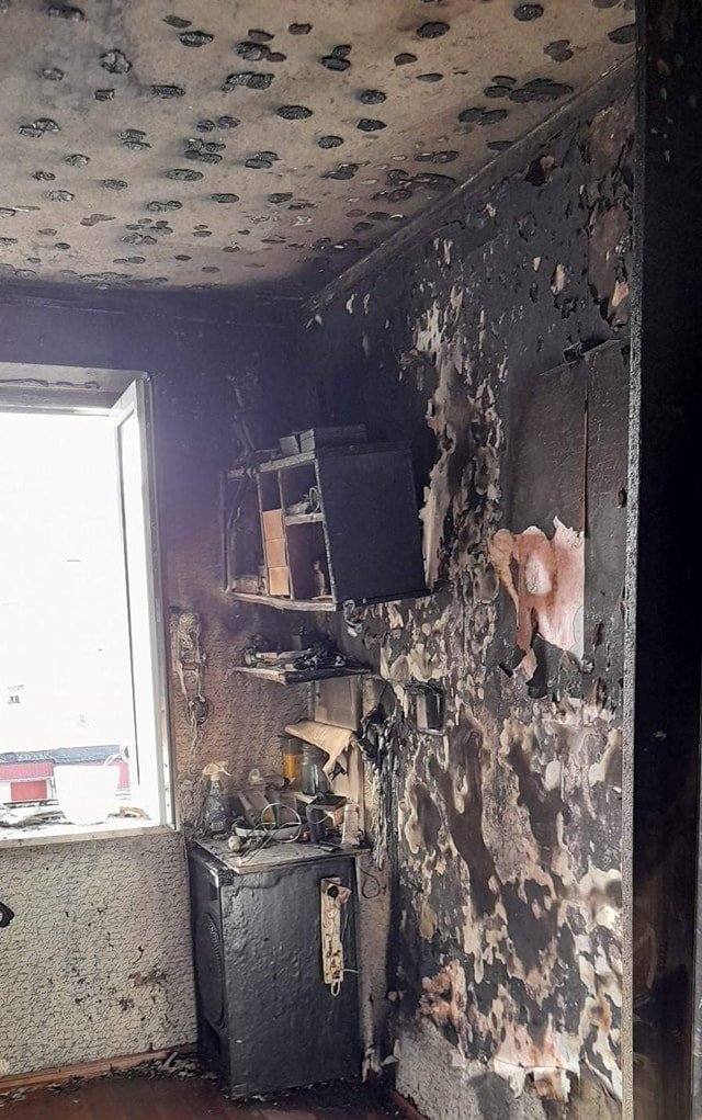 Spaleniu uległo wyposażenie pokoju, opalaniu uległy ściany oraz sufi mieszkania.