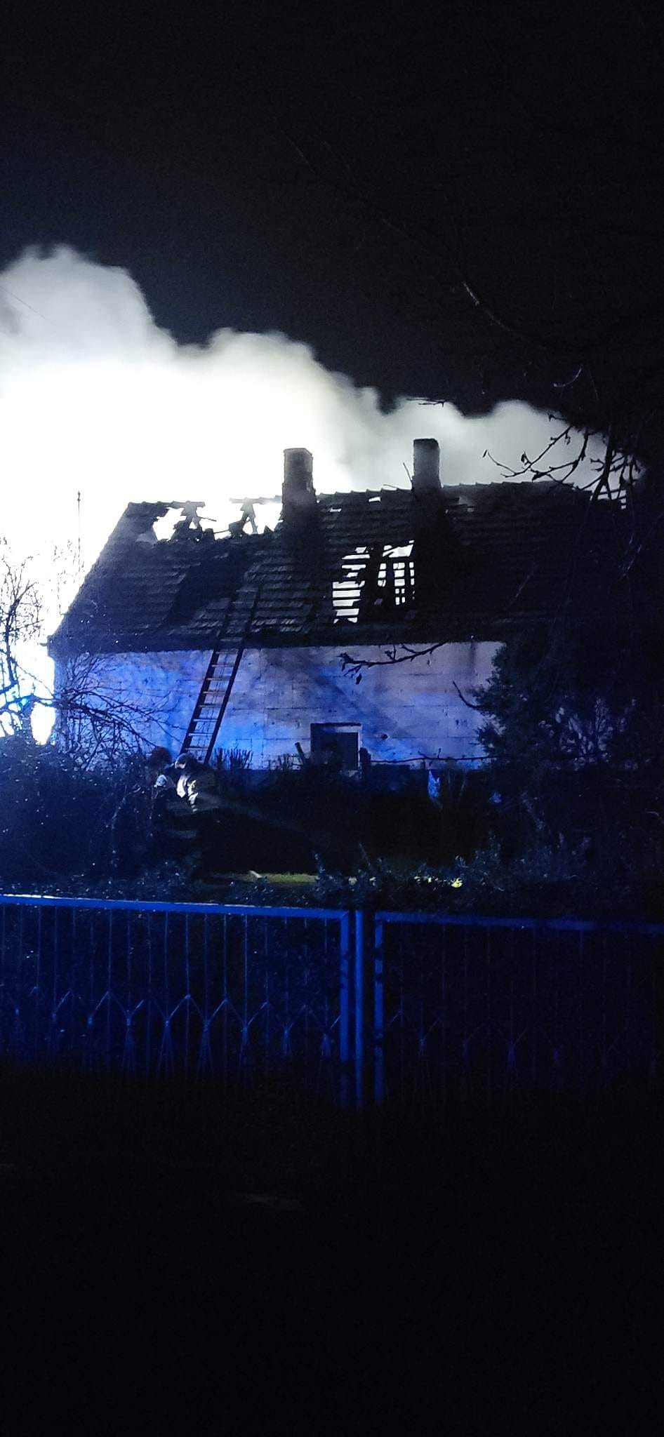 Działania SP polegały na zabezpieczeniu miejsca zdarzenia, oświetleniu terenu działań, wejściu do budynku w aparatach OUO w celu lokalizacji pożaru, podaniu trzech prądów gaśniczych w natarciu na palący się budynek, rozebraniu drewnianej konstrukcji dachu, oddymieniu i przewietrzeniu budynku mieszkalnego, sprawdzeniu pomieszczeń kamerą termowizyjną w celu wykluczenia innych zarzewi ognia oraz detektorem wielogazowym pod kątem gazów niebezpiecznych - nie wykryto zagrożenia.