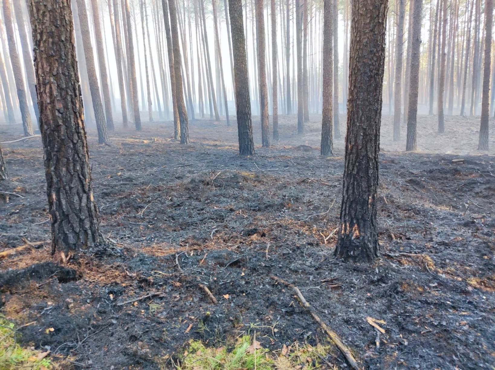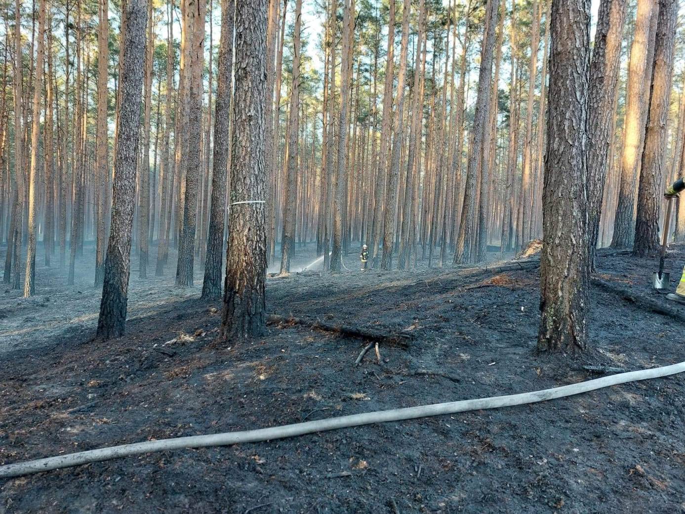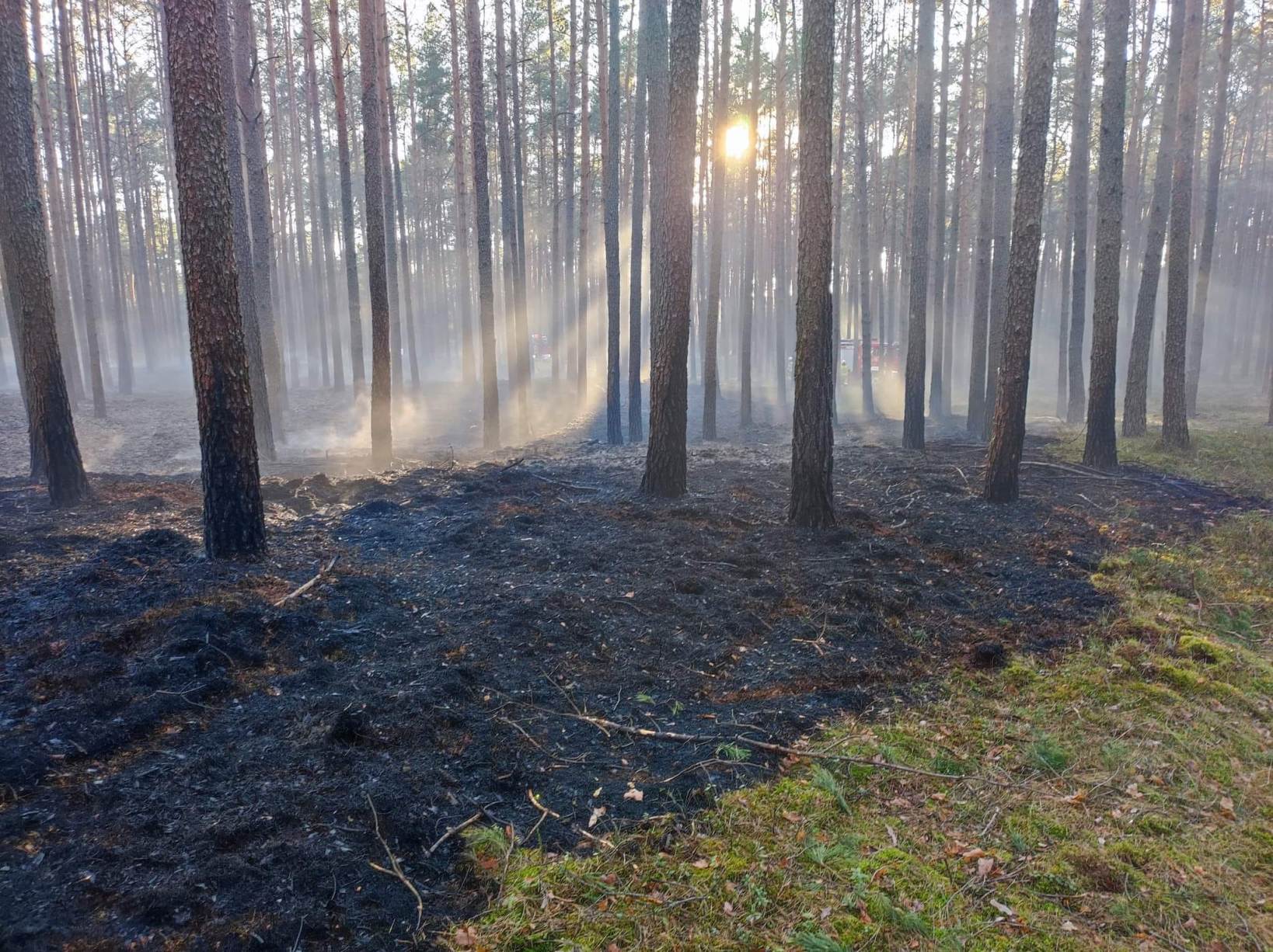 Spaleniu uległo poszycie leśne na powierzchni 1,15 hektara oraz pozostałości drewna.