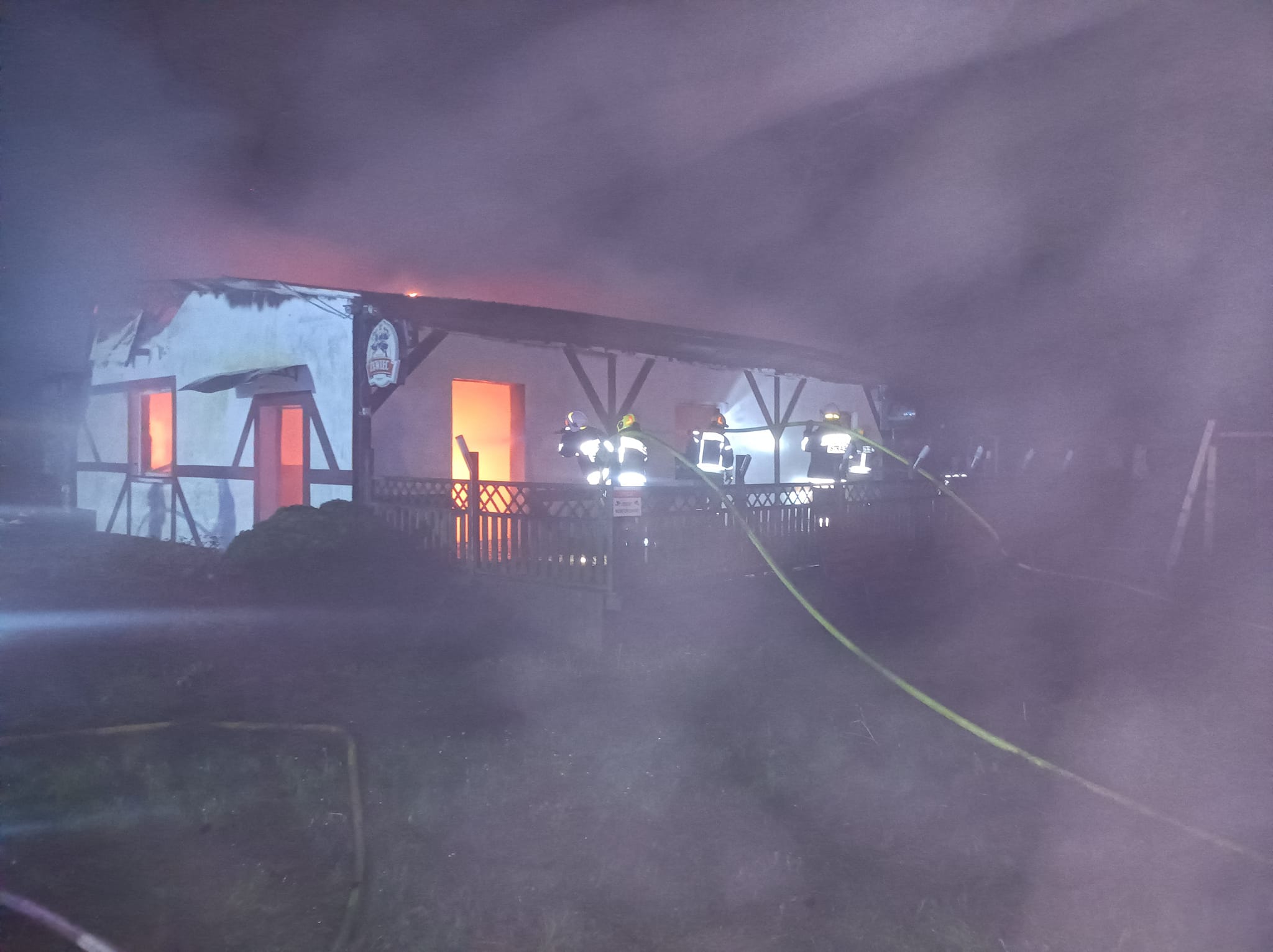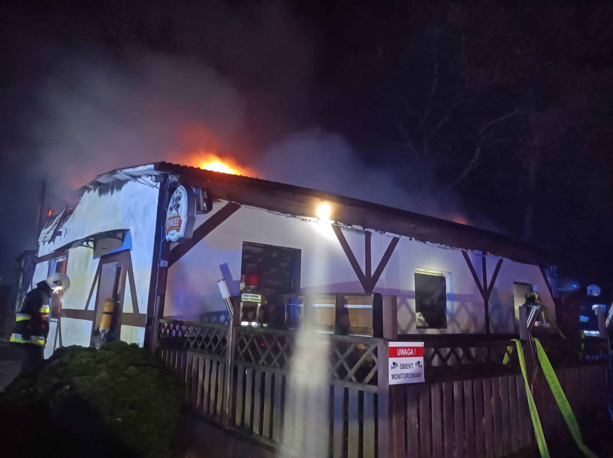 Po dojeździe na miejsce zdarzenia strażacy zastali budynek restauracji, który cały objęty był ogniem.