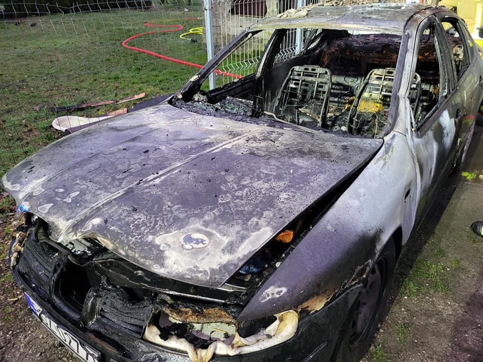 Pożar samochodu i budynku gospodarczego