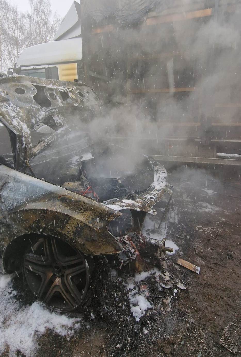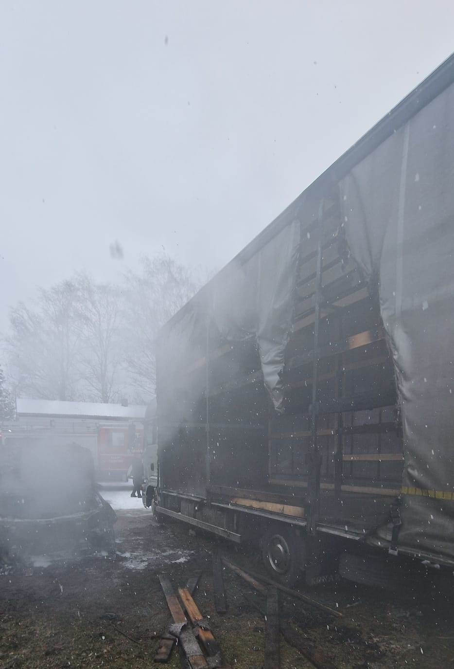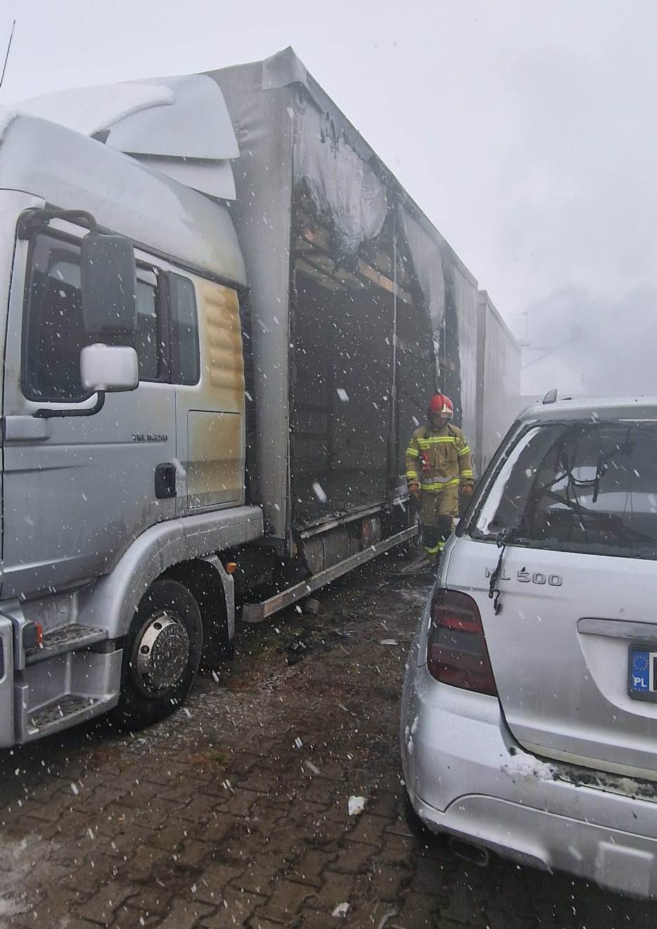 Całkowitemu spaleniu uległ samochód osobowy, uszkodzona została kabina pojazdu Man i lewa strona naczepy oraz kabina samochodu Mercedes i prawa strona naczepy.