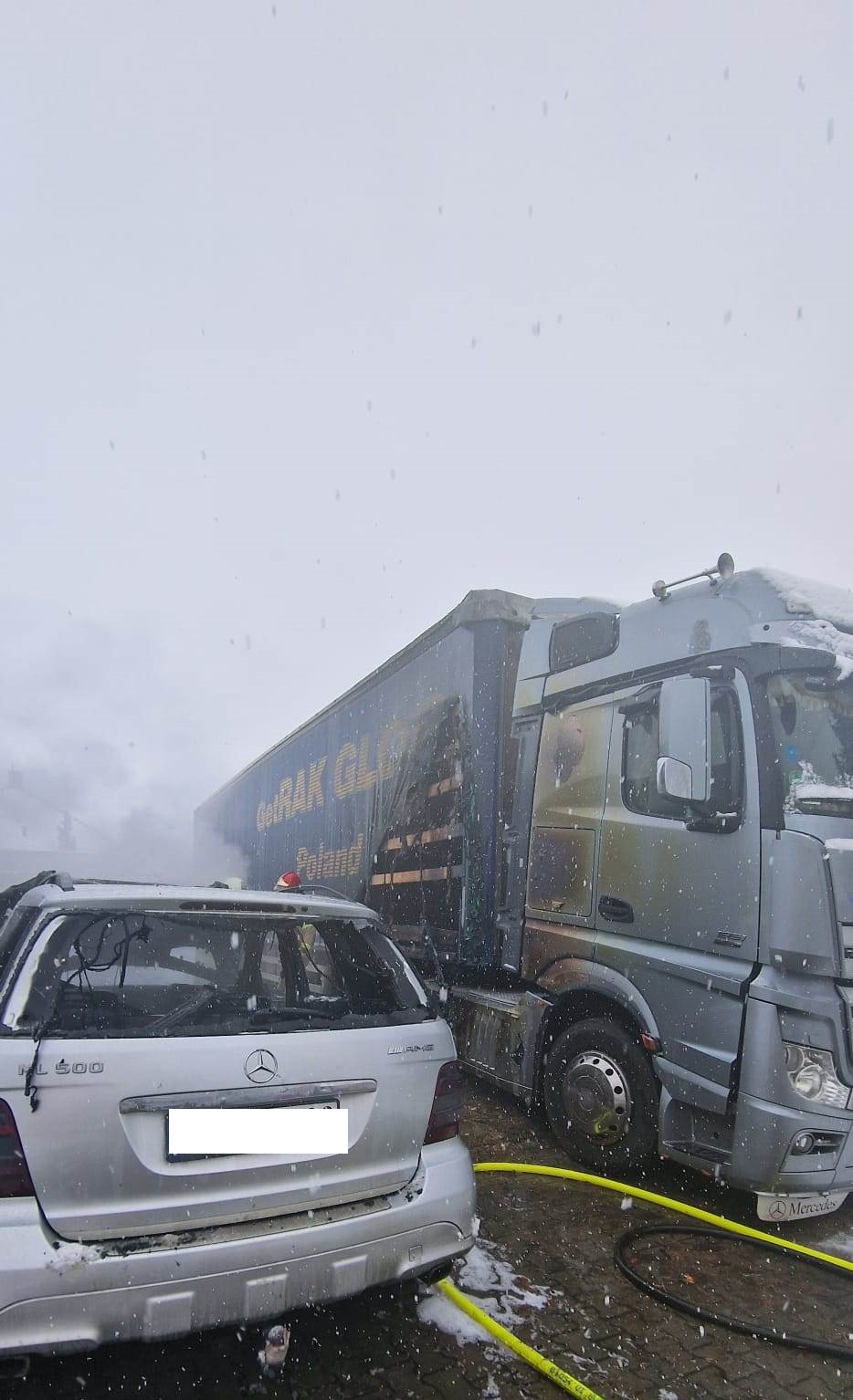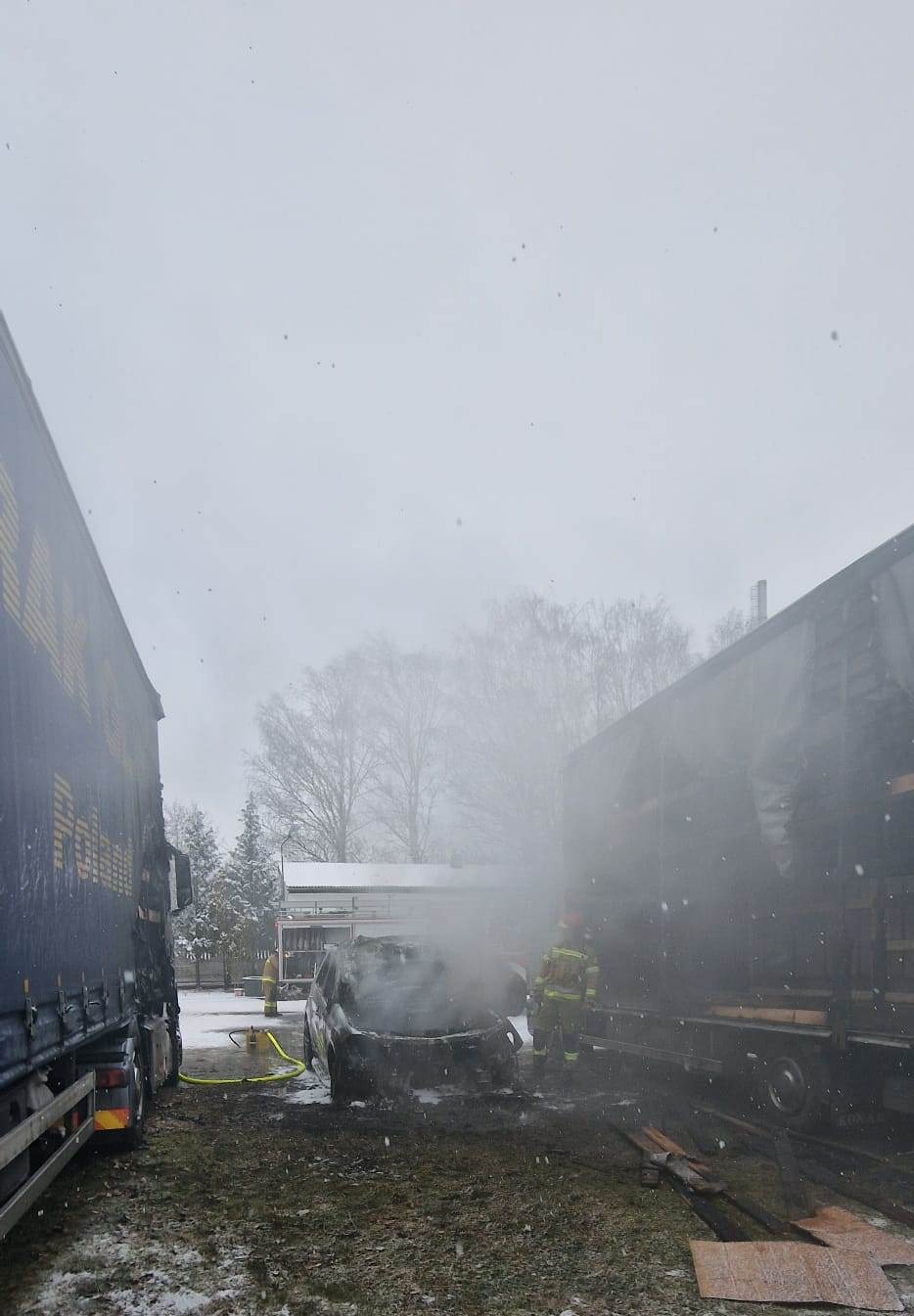 POŻAR SAMOCHODU OSOBOWEGO I POJAZDÓW CIĘŻAROWYCH