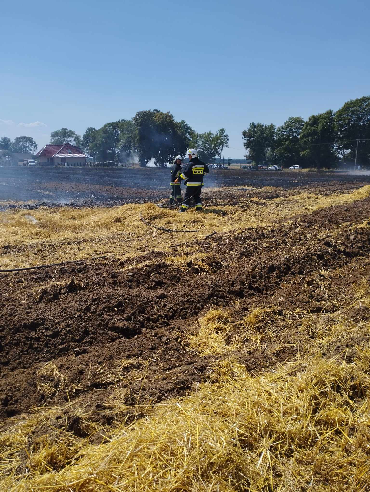 Na miejscu był właściciel i okoliczni rolnicy, którzy przystąpili do orania pola w celu zminimalizowania pożaru.